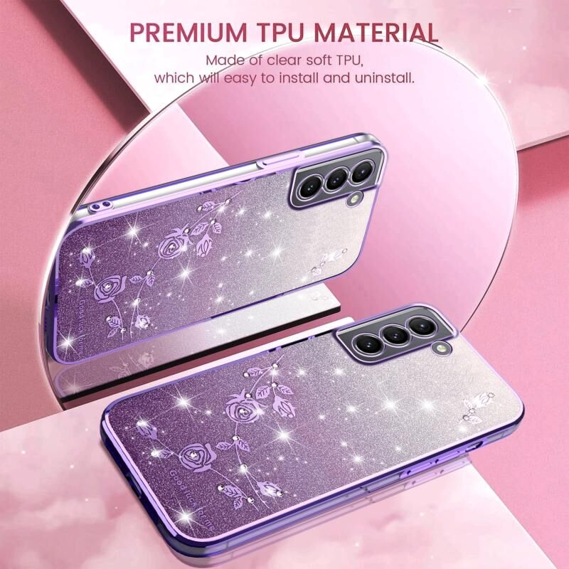 For Samsung Galaxy S21 5G Gradient Glitter Flower All-inclusive Phone Case(Purple)