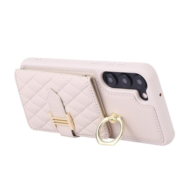 Για Samsung Galaxy S21+ 5G Οριζόντια κάρτα τσάντα δαχτυλίδι τσάντα κάτοχος υπόθεση τηλεφώνου με διπλό κορδόνι (Μπεζ)