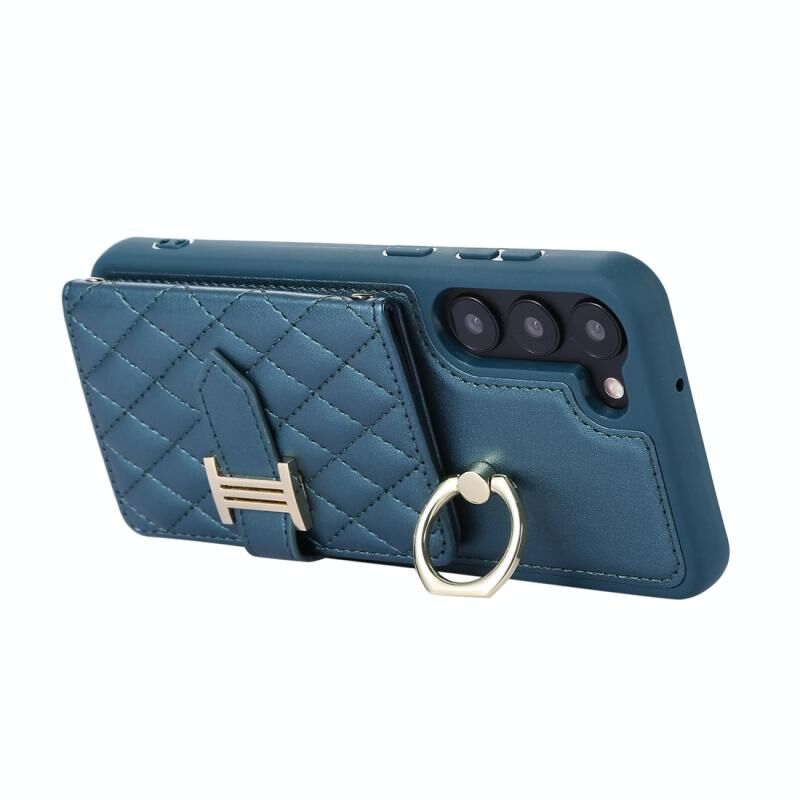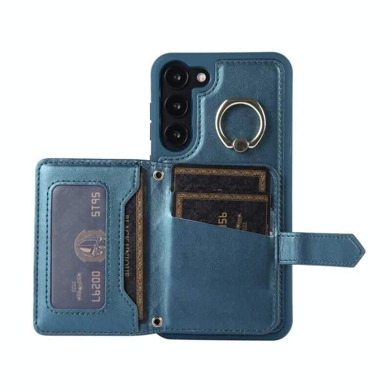 Για Samsung Galaxy S21 5G Οριζόντια κάρτα τσάντα δαχτυλίδι τσάντα κάτοχος υπόθεση τηλεφώνου με διπλό κορδόνι (σκούρο πράσινο)