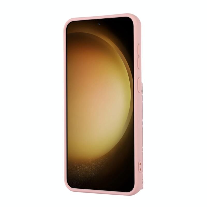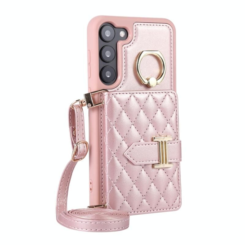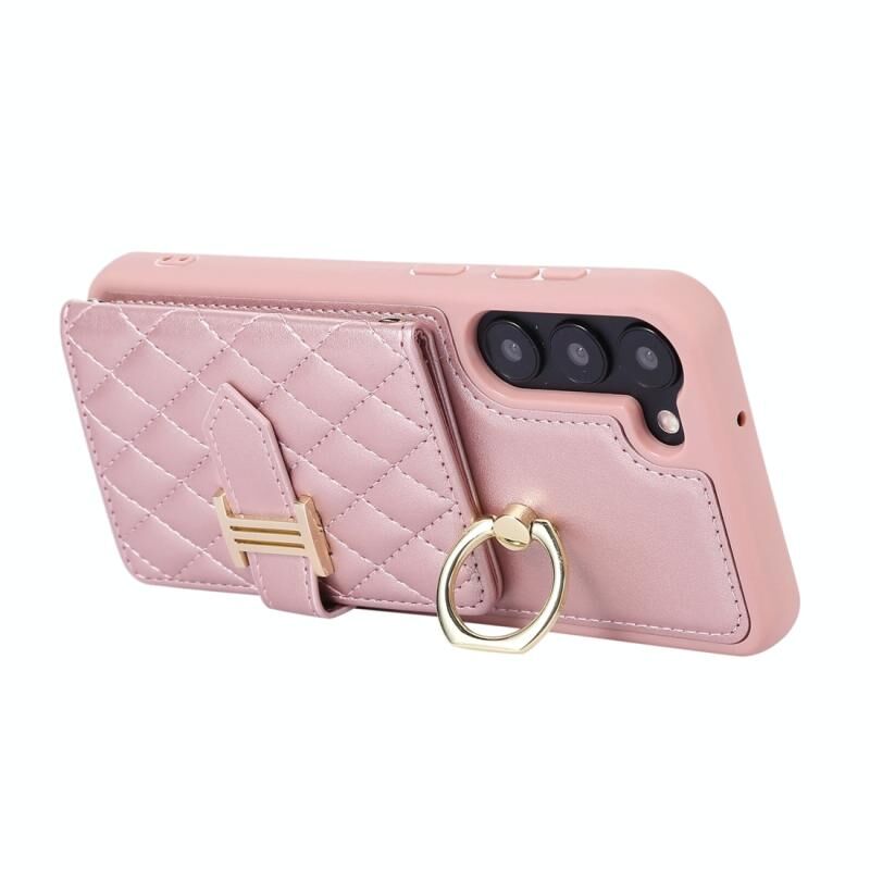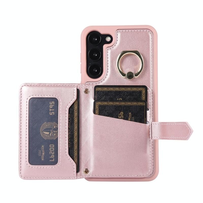 Για Samsung Galaxy S21 5G Οριζόντια κάρτα τσάντα τσάντα δαχτυλίδι κάτοχος υπόθεση τηλεφώνου με διπλό κορδόνι (ροζ χρυσό)