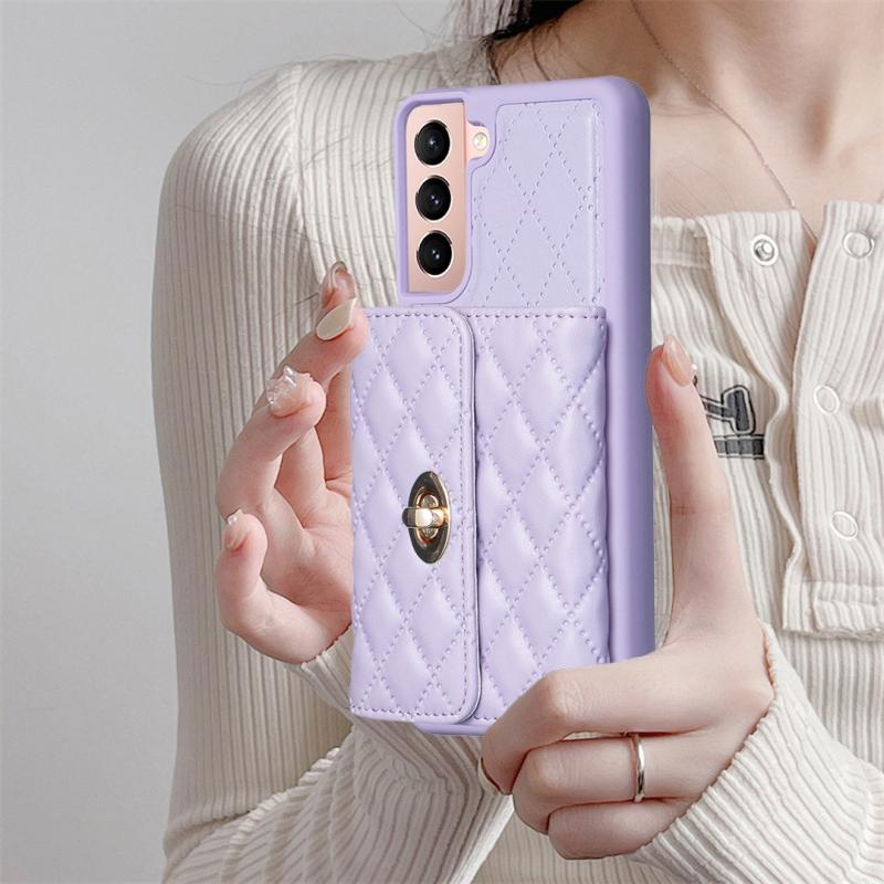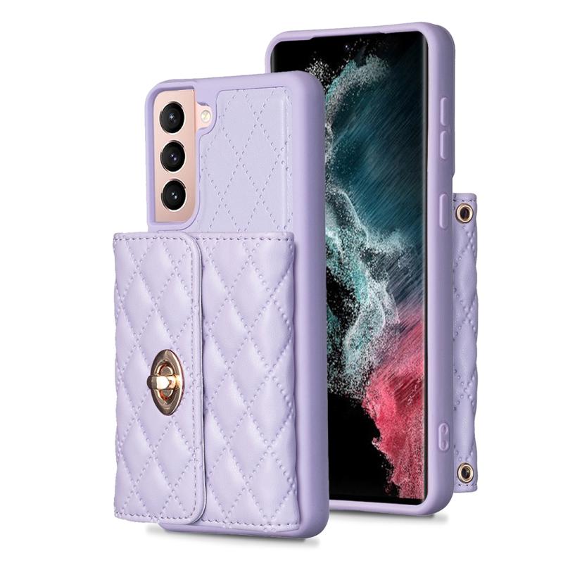 Θήκη τηλεφώνου Samsung Galaxy S21 5G Οριζόντια Μεταλλική Αγκράφα Πορτοφόλι Ρομβοειδές Δέρμα (Μωβ)