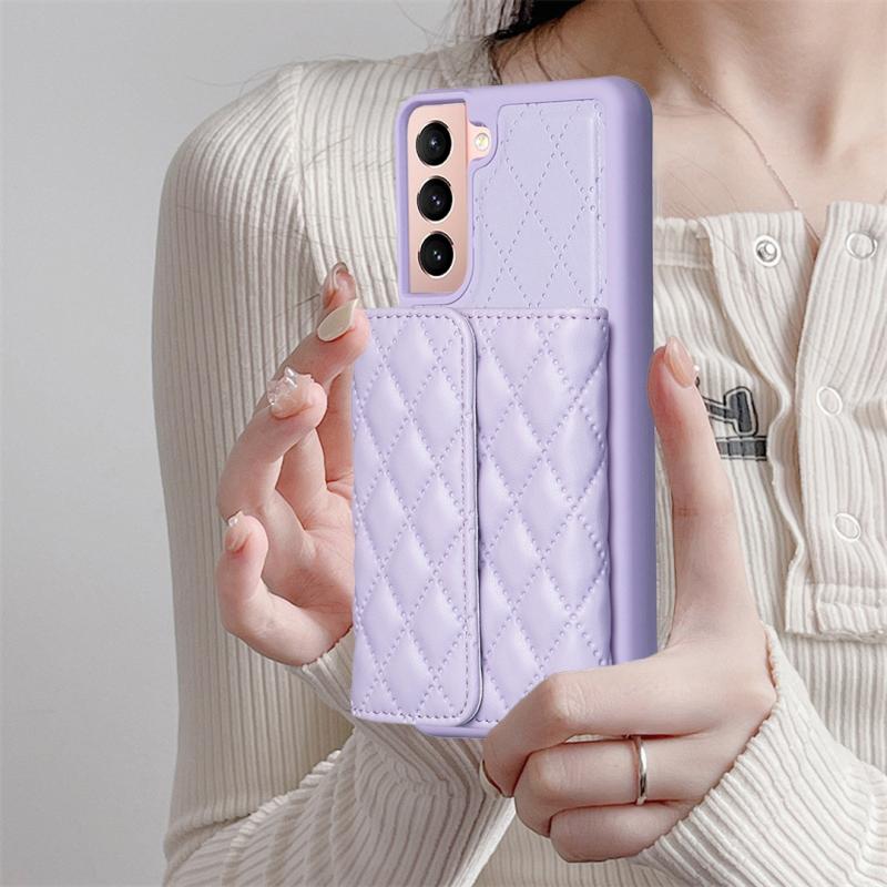 Θήκη τηλεφώνου Samsung Galaxy S21 5G Οριζόντια, Δερμάτινη με Ρομβικό Σχέδιο (Μωβ)