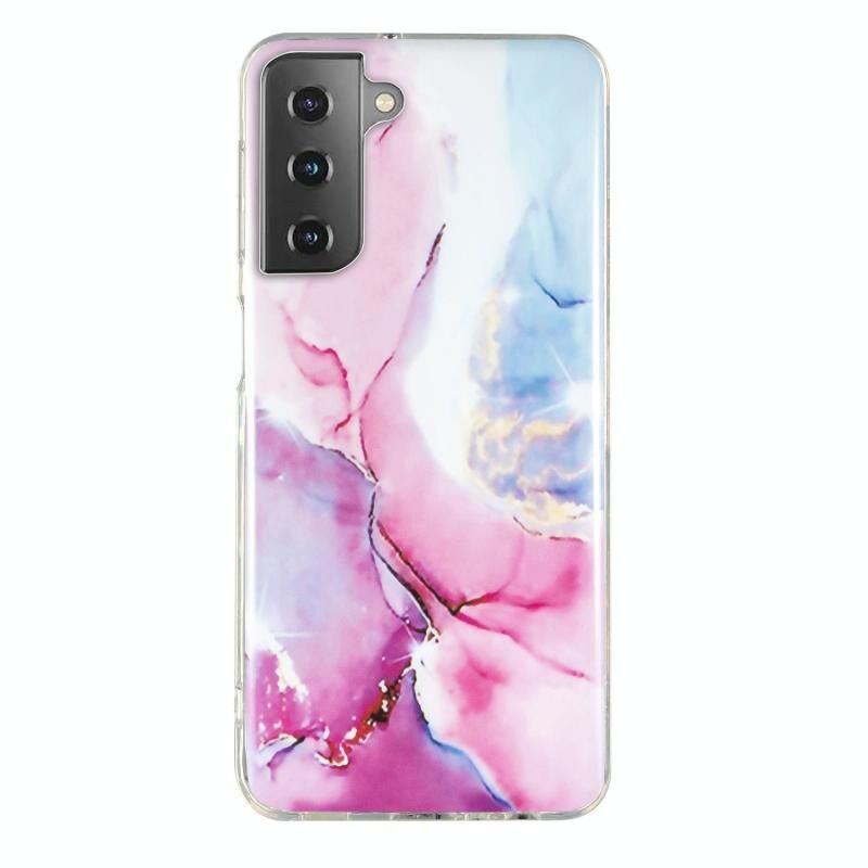 For Samsung Galaxy S21+ 5G IMD Marble Pattern TPU Phone Case(Pink Blue)