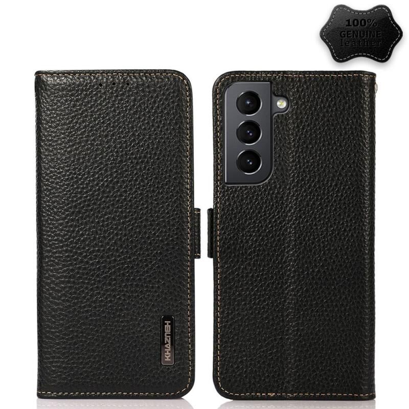 Θήκη τηλεφώνου Samsung Galaxy S21+ 5G KHAZNEH με μαγνητικό κλείσιμο, από γνήσιο δέρμα Litchi και προστασία RFID (Μαύρο)