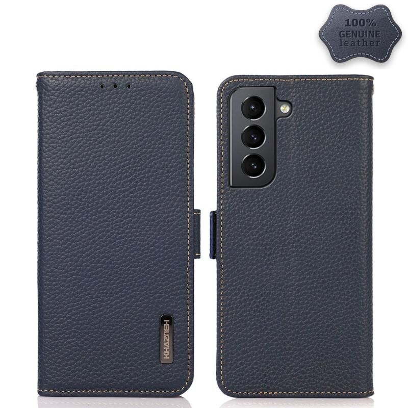Θήκη κινητού τηλεφώνου Samsung Galaxy S21 5G KHAZNEH με μαγνητικό κλείσιμο, από γνήσιο δέρμα Litchi και προστασία RFID (Μαύρο)
