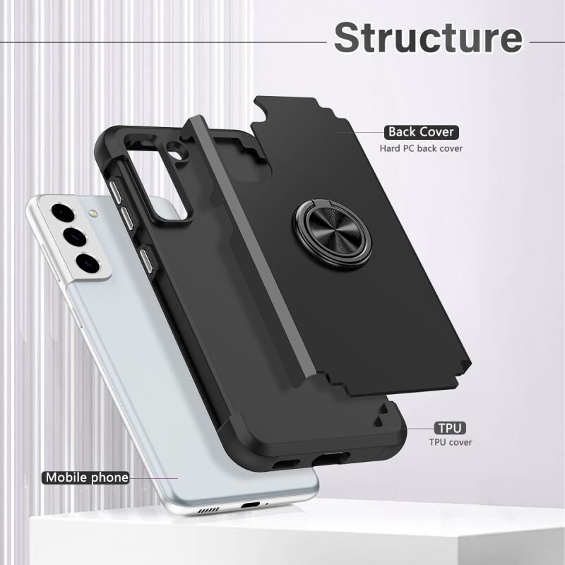Θήκη κινητού τηλεφώνου με περιστρεφόμενη βάση δακτυλιδιού και μαγνητική υποστήριξη για Samsung Galaxy S21+ 5G (Μέντα Πράσινο)