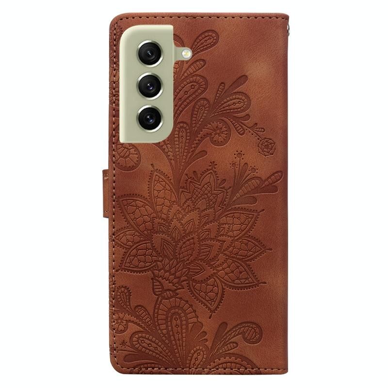 Θήκη κινητού τηλεφώνου Samsung Galaxy S21 5G από PU με δαντελένιο λουλουδάτο ανάγλυφο και μαγνητικό κούμπωμα, με λουρί καρπού (Πράσινο)