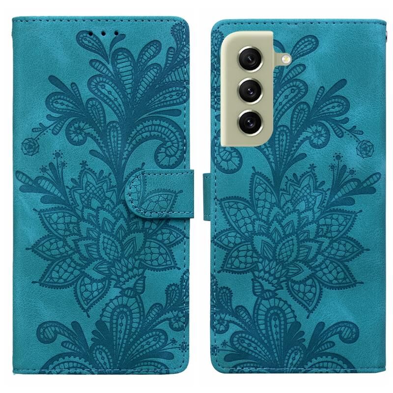 Θήκη κινητού τηλεφώνου Samsung Galaxy S21 5G από PU με δαντελένιο λουλουδάτο ανάγλυφο και μαγνητικό κούμπωμα, με λουρί καρπού (Πράσινο)