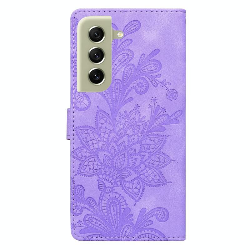 Θήκη κινητού τηλεφώνου Samsung Galaxy S21 5G από PU με δαντελένιο λουλουδάτο ανάγλυφο και μαγνητικό κούμπωμα, με λουρί καρπού (Πράσινο)