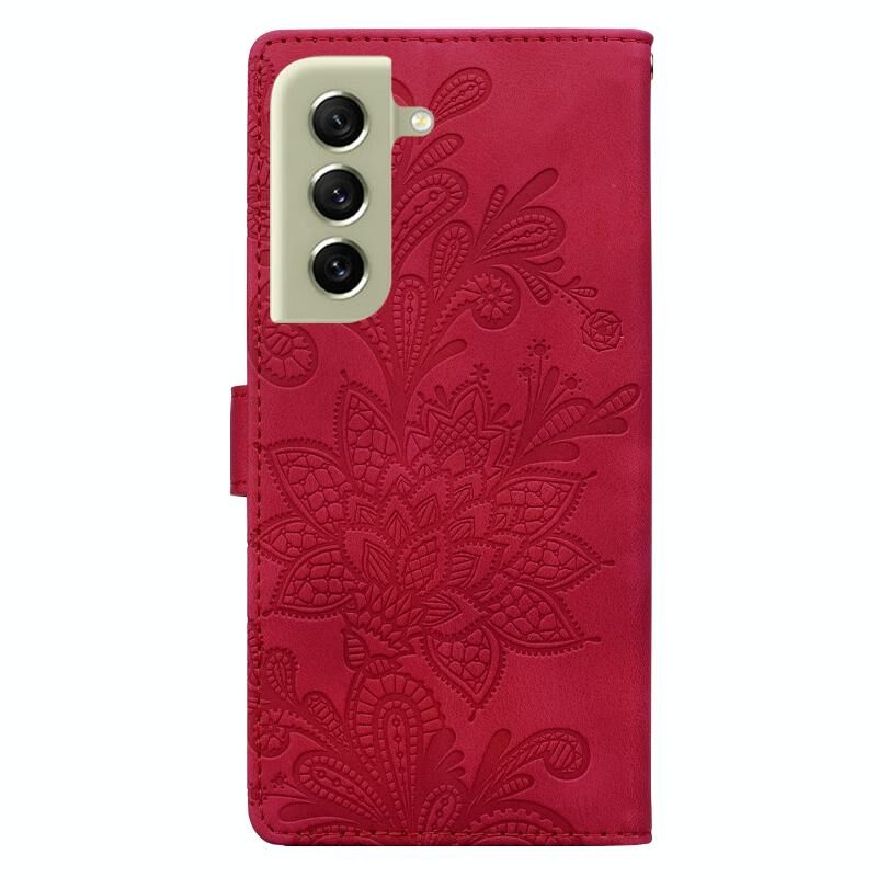 Θήκη κινητού τηλεφώνου Samsung Galaxy S21 5G από PU με δαντελένιο λουλουδάτο ανάγλυφο και μαγνητικό κούμπωμα, με λουρί καρπού (Πράσινο)
