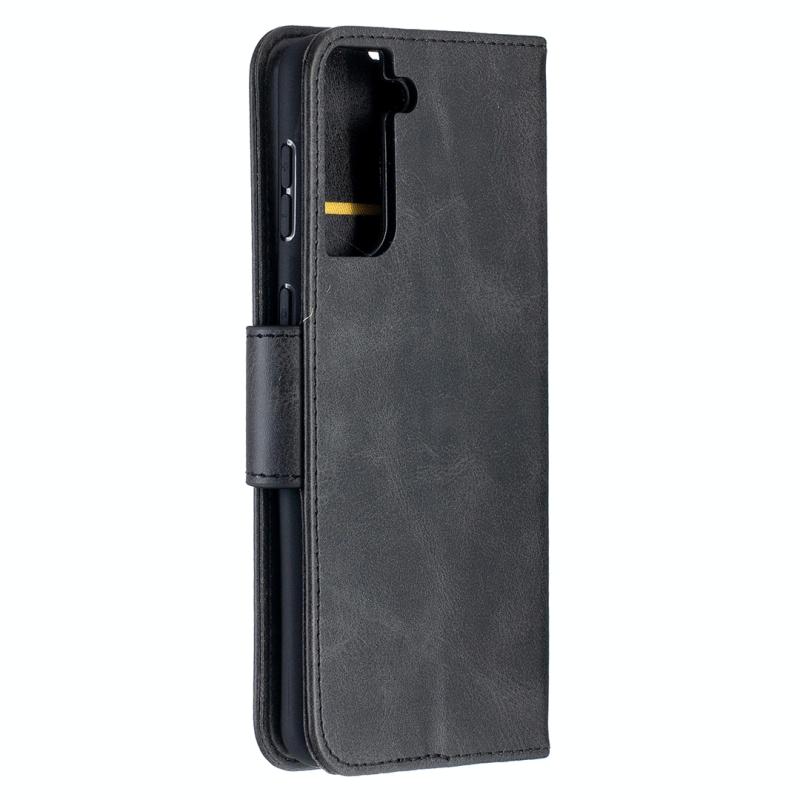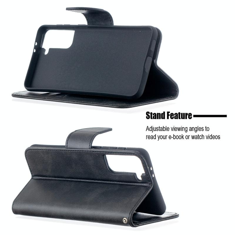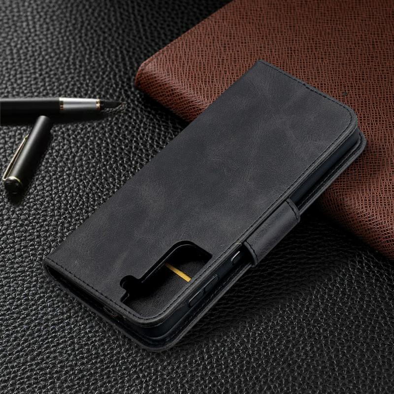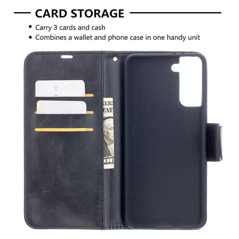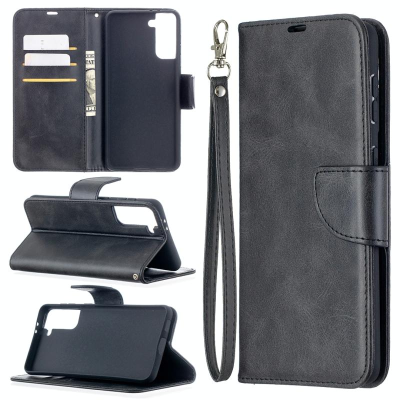 For Samsung Galaxy S21+ 5G Lambskin Texture Pure Color Horizontal Flip PU Leather Case with Holder & Card Slots & Wallet & Lanyard(Black)