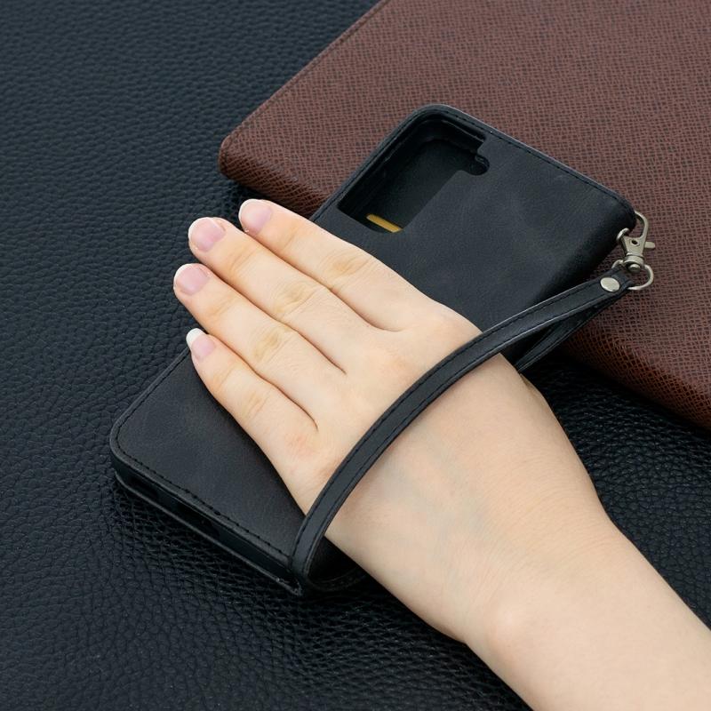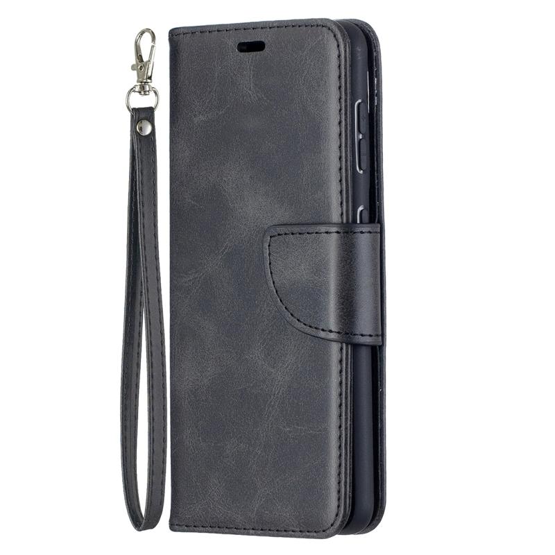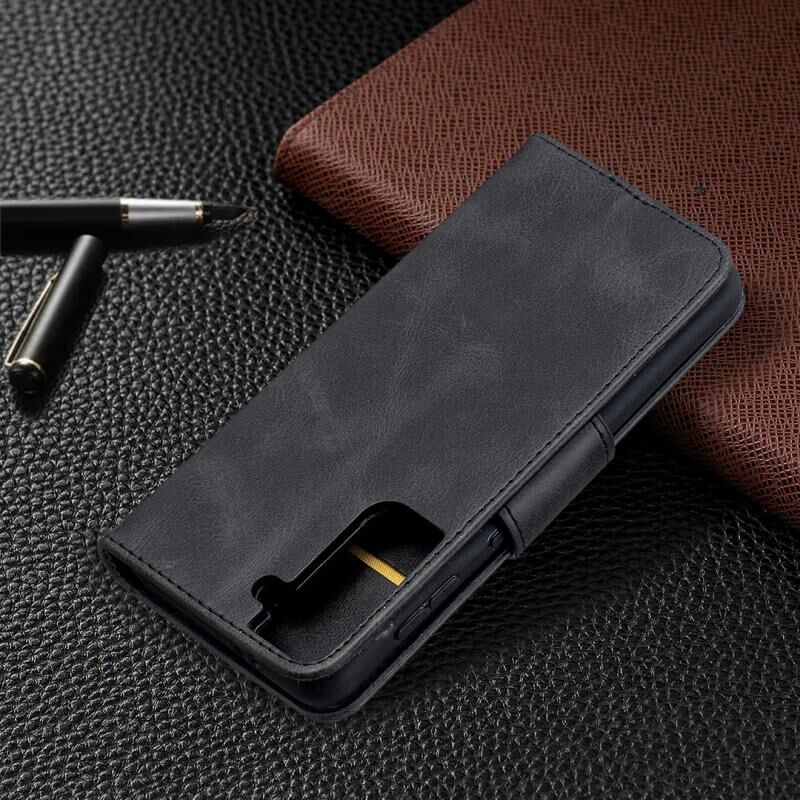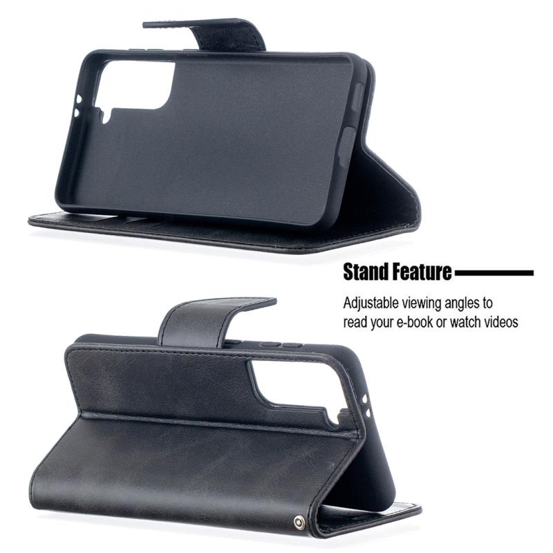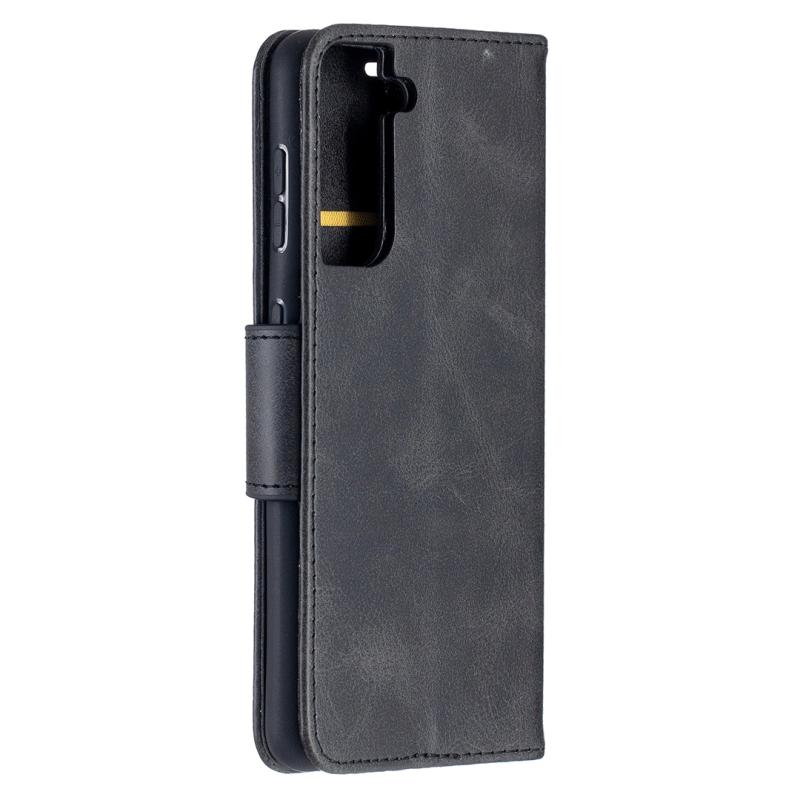 For Samsung Galaxy S21 5G Lambskin Texture Pure Color Horizontal Flip PU Leather Case with Holder & Card Slots & Wallet & Lanyard(Black)