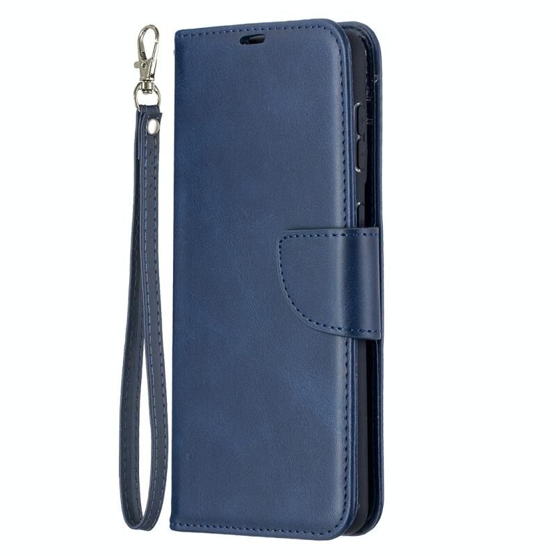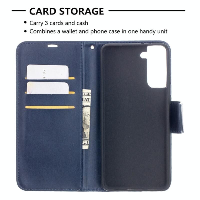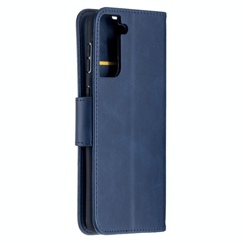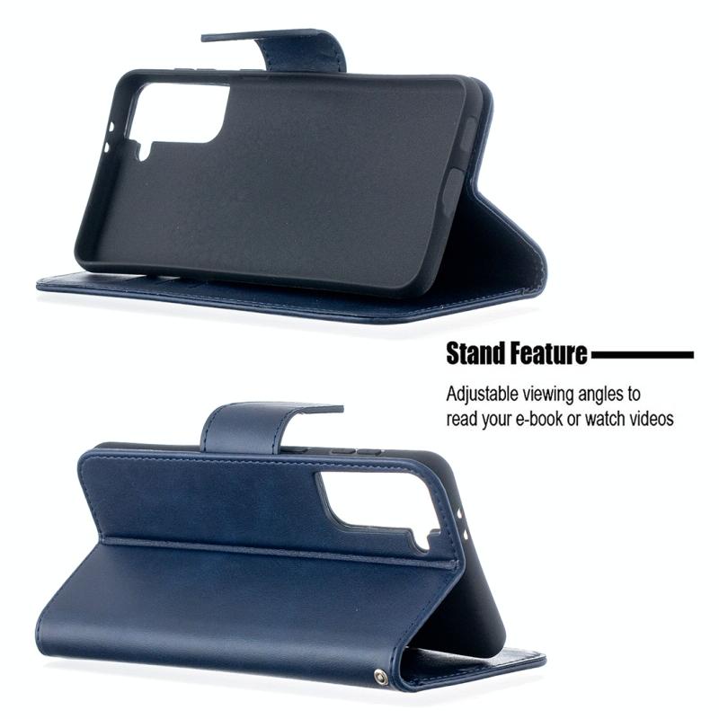 For Samsung Galaxy S21+ 5G Lambskin Texture Pure Color Horizontal Flip PU Leather Case with Holder & Card Slots & Wallet & Lanyard(Blue)