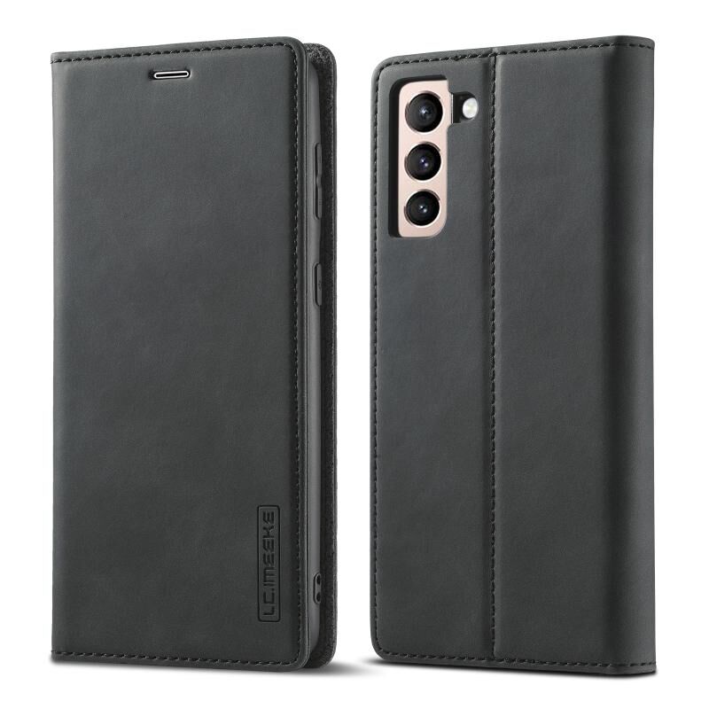 Για Samsung Galaxy S21 5G LC.IMEEKE Θήκη οριζόντιας αναδίπλωσης, εξαιρετικά λεπτή, ματ από TPU + Δέρμα PU με ισχυρό μαγνητισμό, βάση στήριξης & θήκες για κάρτες & πορτοφόλι (Μαύρο) (LC.IMEEKE)