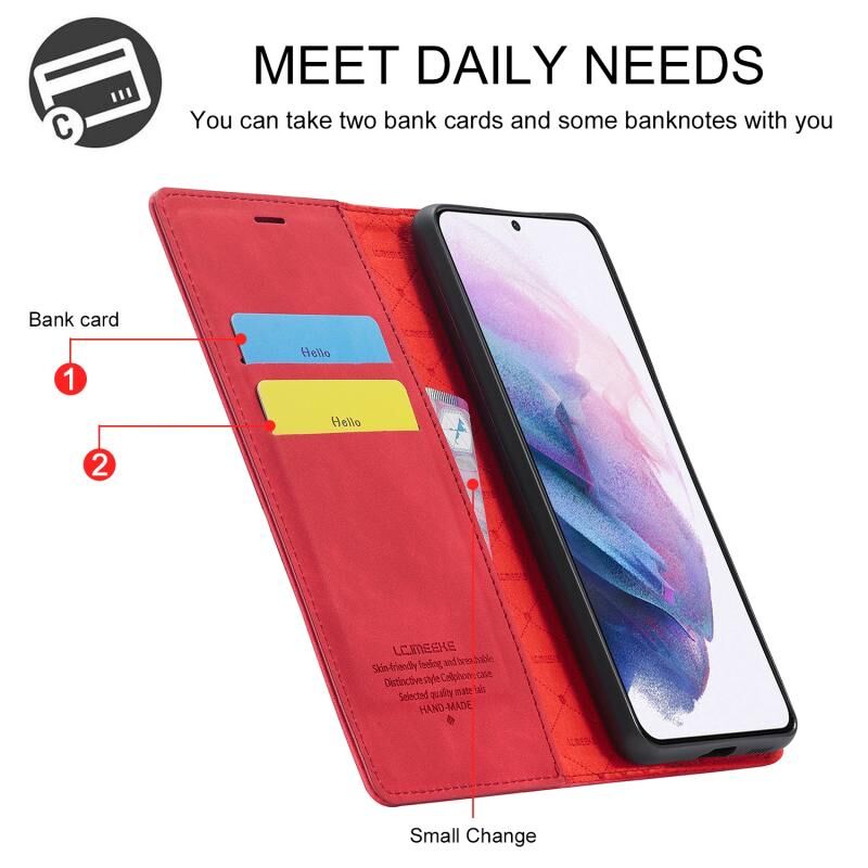 Για Samsung Galaxy S21 5G LC.IMEEKE Θήκη οριζόντιας αναδίπλωσης, εξαιρετικά λεπτή, ματ από TPU + Δέρμα PU με ισχυρό μαγνητισμό, βάση στήριξης & θήκες για κάρτες & πορτοφόλι (Μαύρο) (LC.IMEEKE)