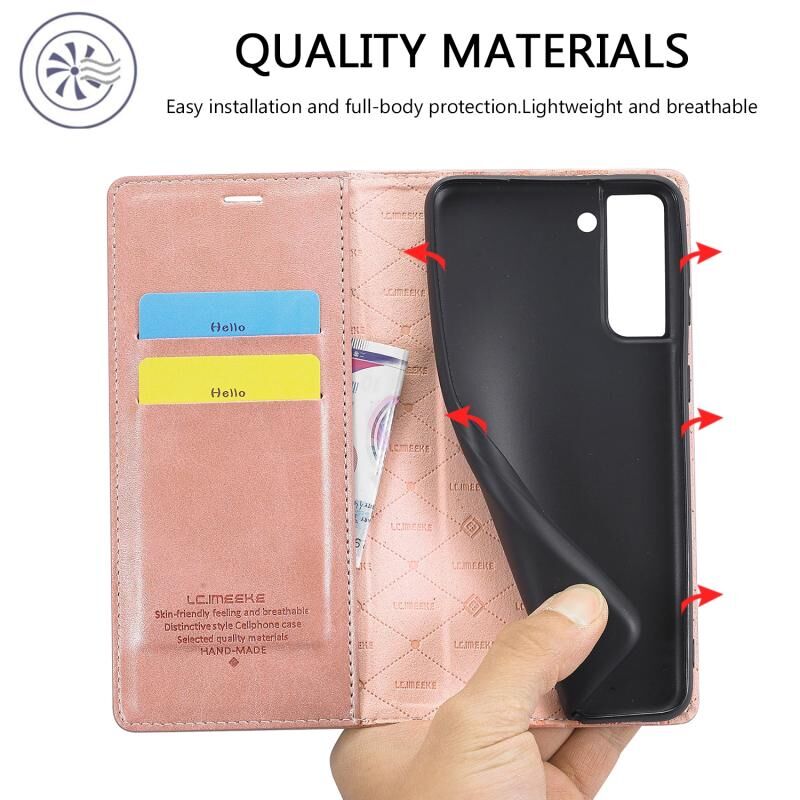 Για Samsung Galaxy S21 5G LC.IMEEKE Θήκη οριζόντιας αναδίπλωσης, εξαιρετικά λεπτή, ματ από TPU + Δέρμα PU με ισχυρό μαγνητισμό, βάση στήριξης & θήκες για κάρτες & πορτοφόλι (Μαύρο) (LC.IMEEKE)