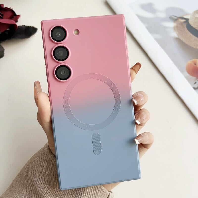 Θήκη τηλεφώνου για Samsung Galaxy S21 5G, υγρή σιλικόνη TPU, διαβαθμιστικό χρώμα MagSafe (Διαβαθμιστικό ροζ-μπλε)