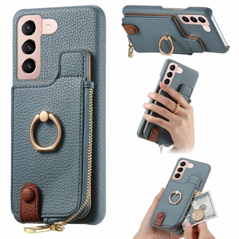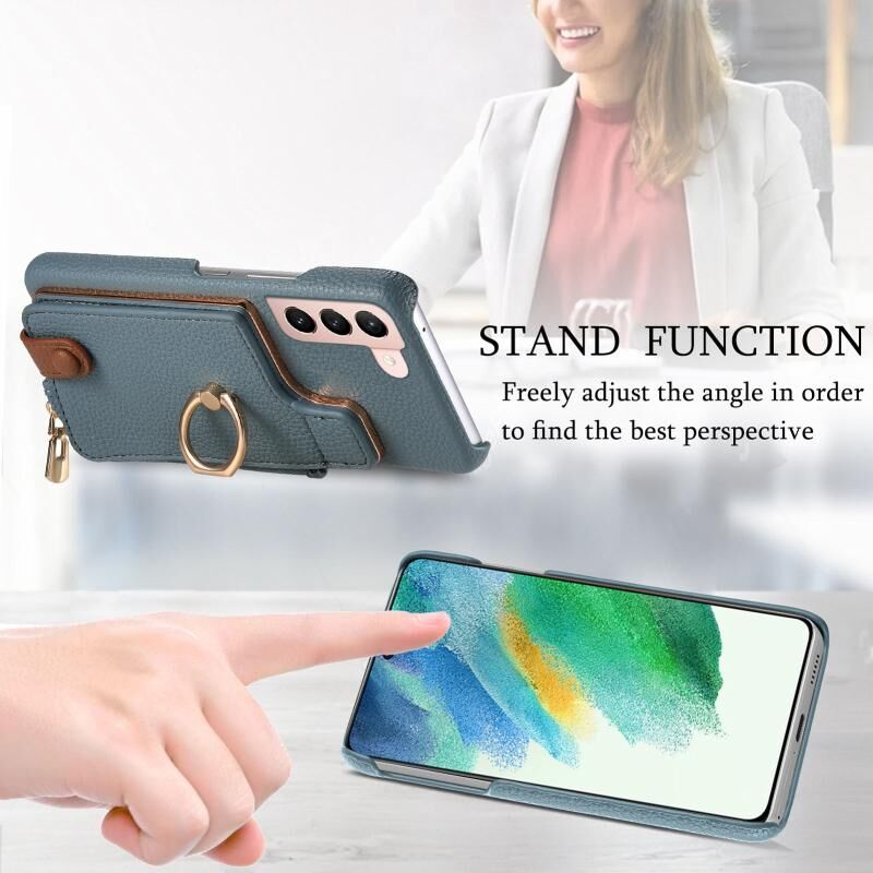 Για Samsung Galaxy S21 + 5G Litchi δέρμα λάδι Edge δαχτυλίδι φερμουάρ πορτοφόλι πίσω θήκη τηλεφώνου (μπλε)