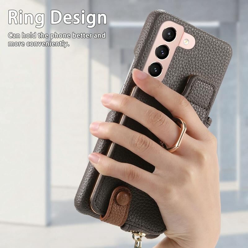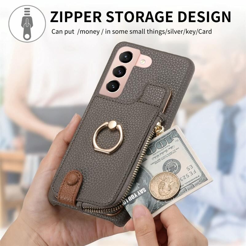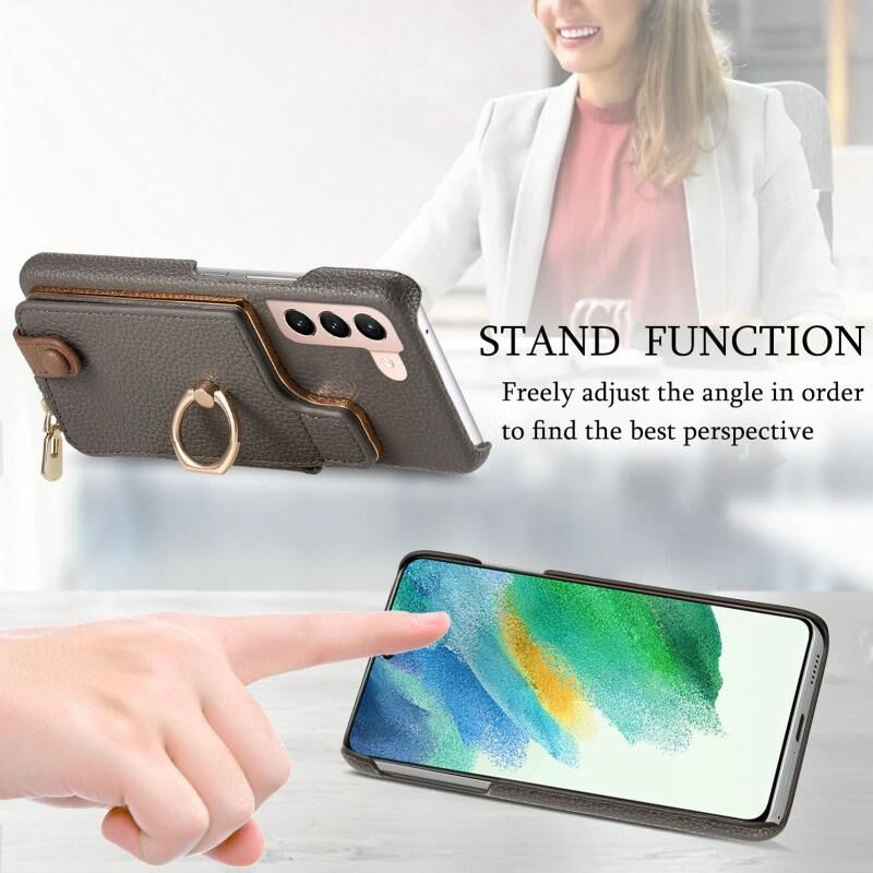 Για Samsung Galaxy S21 + 5G Litchi δέρμα λάδι Edge δαχτυλίδι φερμουάρ πορτοφόλι πίσω θήκη τηλεφώνου (γκρι)