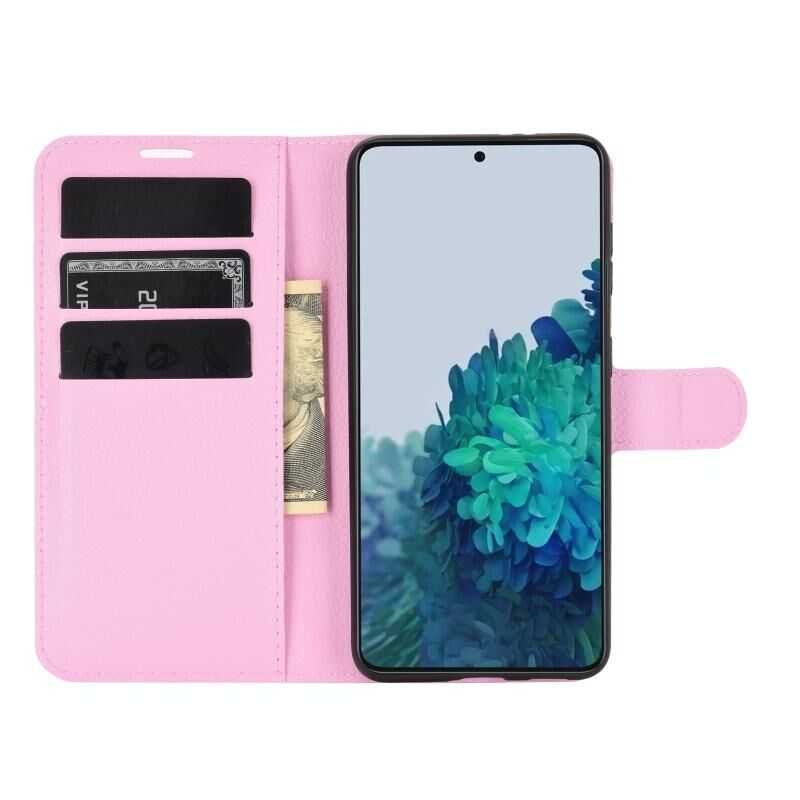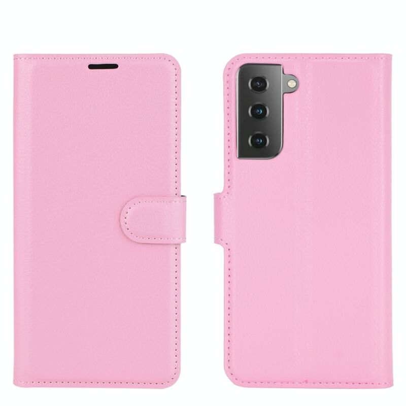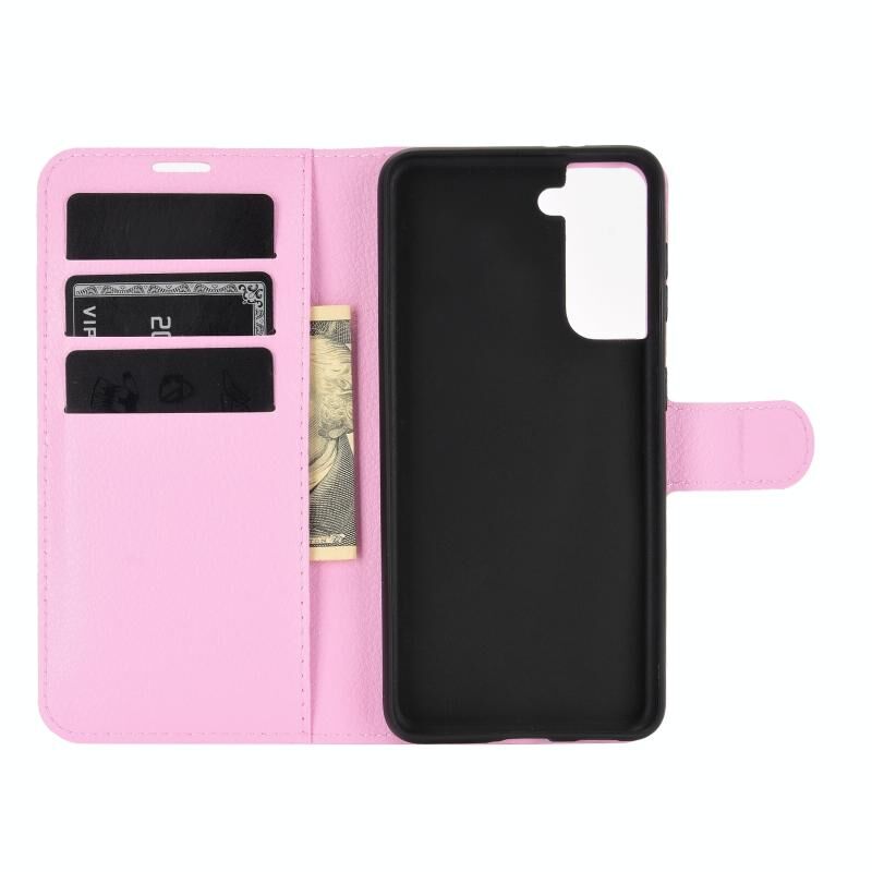 Για Samsung Galaxy S21+ 5G Litchi υφή οριζόντια Flip προστατευτική θήκη με θήκη & υποδοχές για κάρτες & πορτοφόλι (ροζ)