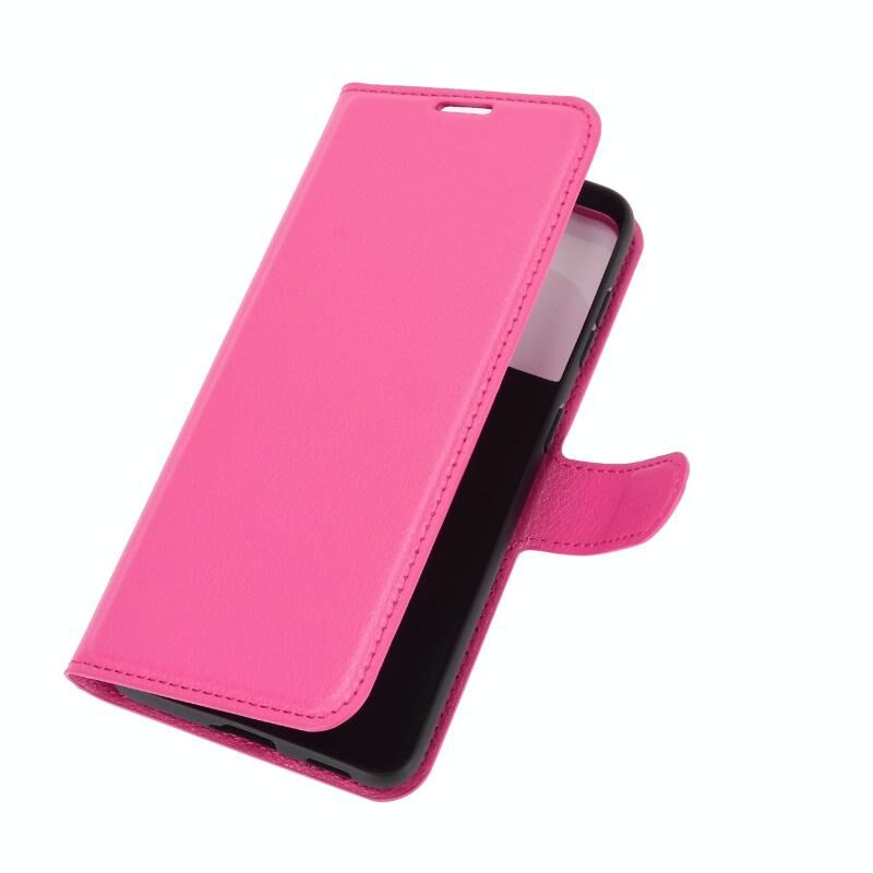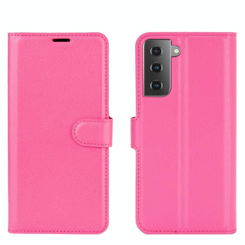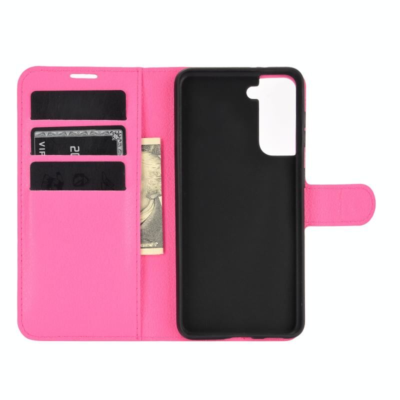 Προστατευτική θήκη τύπου βιβλιαρίου με υφή δέρματος λύτσι για Samsung Galaxy S21 5G με βάση, υποδοχές καρτών και θήκη πορτοφολιού (Ροζ κόκκινο)
