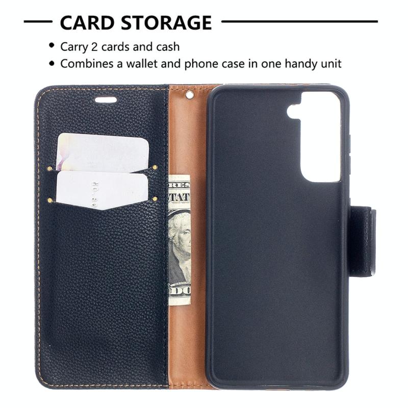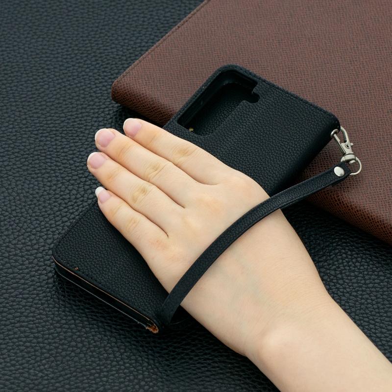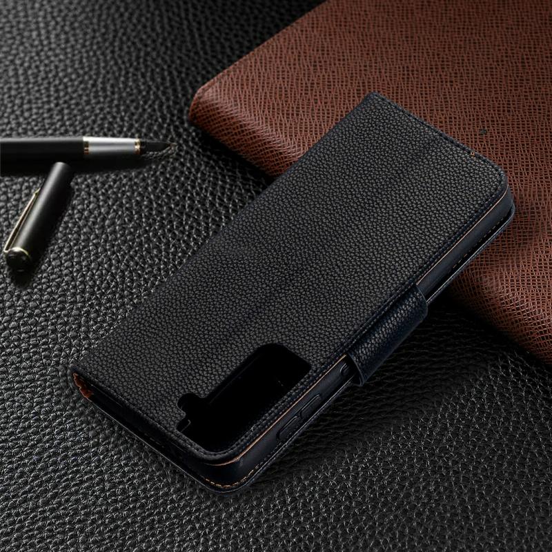 For Samsung Galaxy S21 5G Litchi Texture Pure Color Horizontal Flip Leather Case with Holder & Card Slots & Wallet & Lanyard(Black)