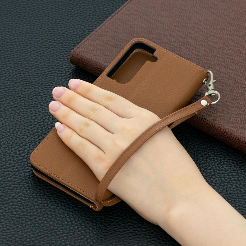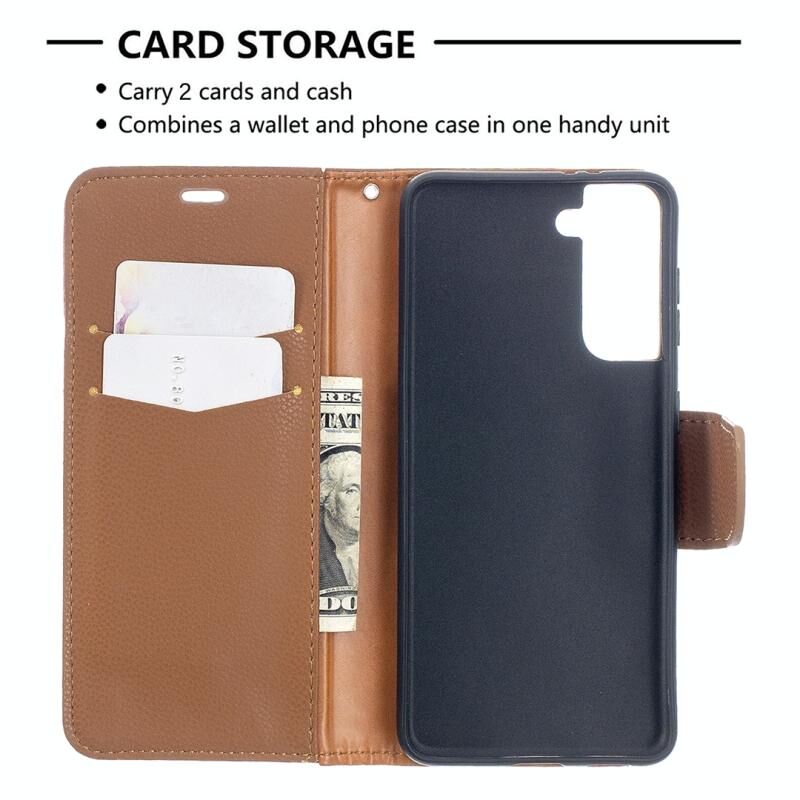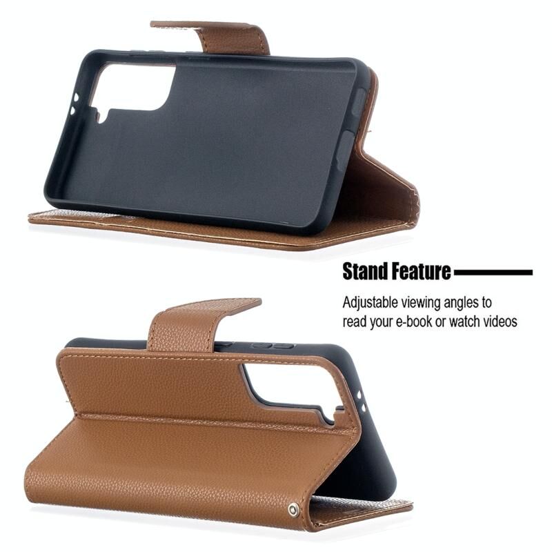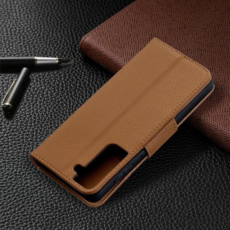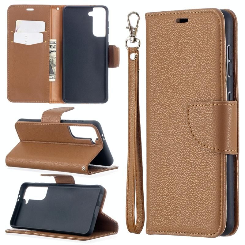 For Samsung Galaxy S21 5G Litchi Texture Pure Color Horizontal Flip Leather Case with Holder & Card Slots & Wallet & Lanyard(Brown)