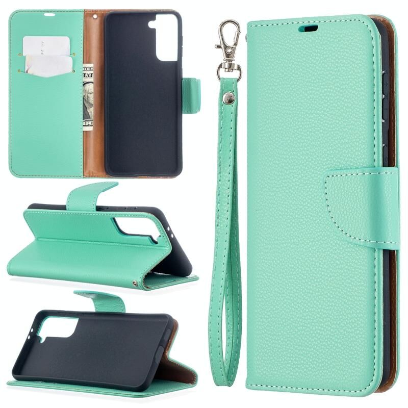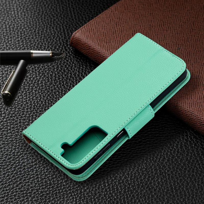 For Samsung Galaxy S21+ 5G Litchi Texture Pure Color Horizontal Flip Leather Case with Holder & Card Slots & Wallet & Lanyard(Green)