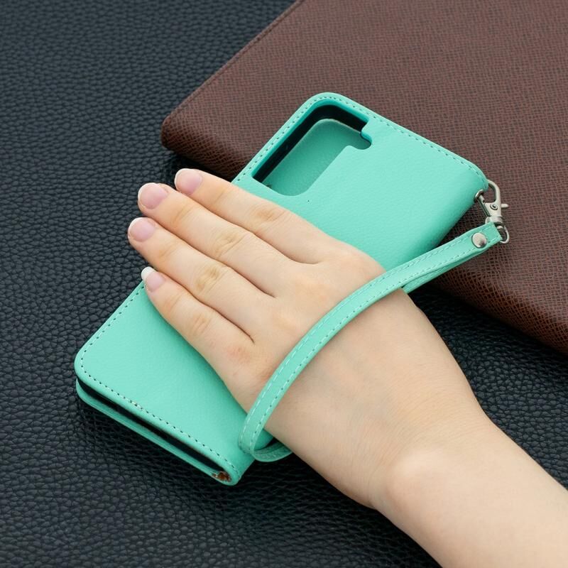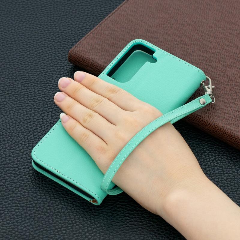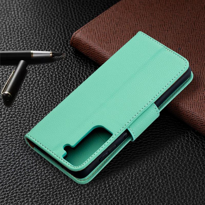 For Samsung Galaxy S21 5G Litchi Texture Pure Color Horizontal Flip Leather Case with Holder & Card Slots & Wallet & Lanyard(Green)