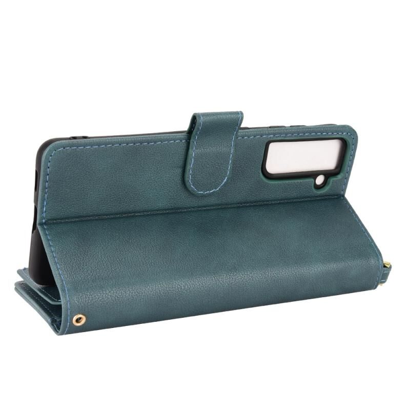 Για Samsung Galaxy S21 + 5G Litchi υφή φερμουάρ δερμάτινη θήκη τηλεφώνου (πράσινο)
