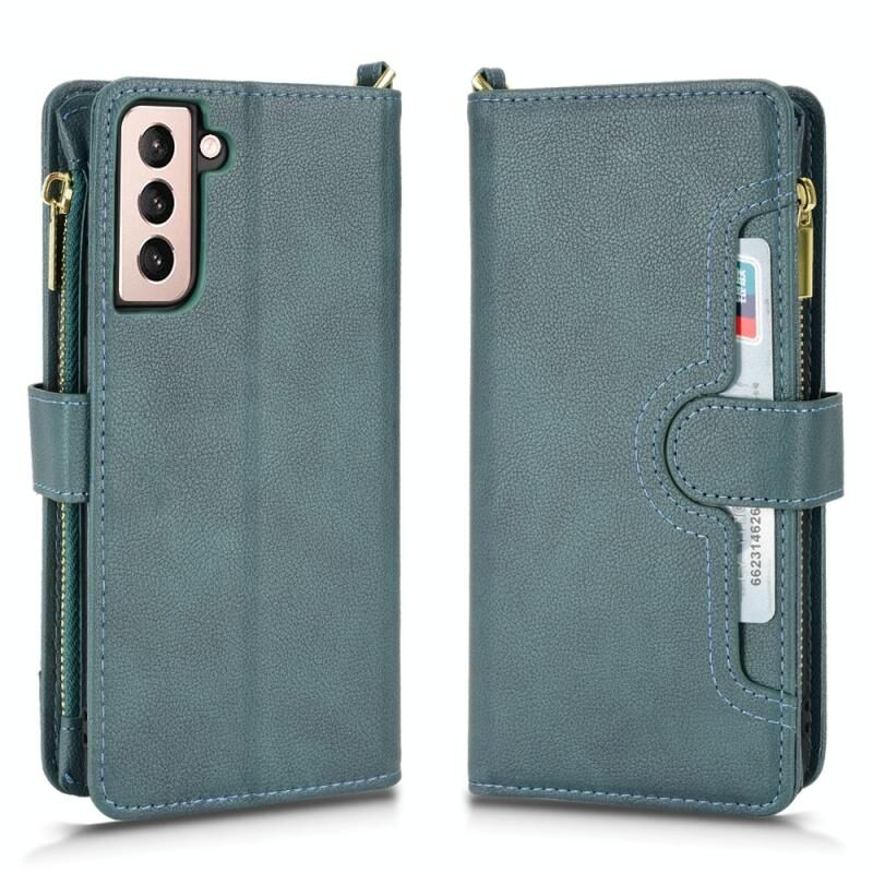 Για Samsung Galaxy S21 5G Litchi υφή φερμουάρ δερμάτινη θήκη τηλεφώνου (πράσινο)