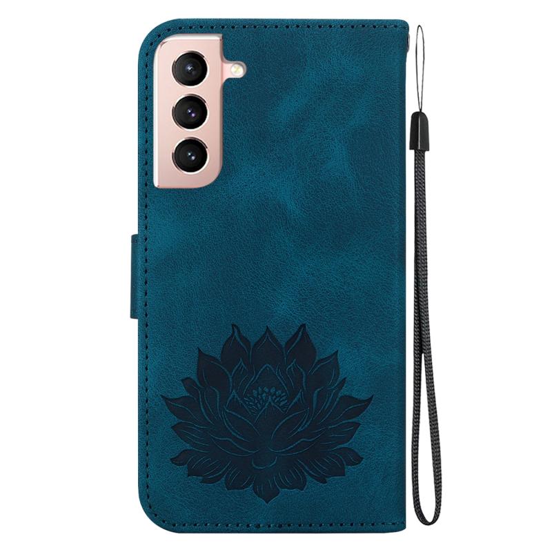 For Samsung Galaxy S21 5G Lotus Embossed Leather Phone Case(Dark Blue)