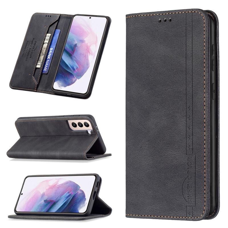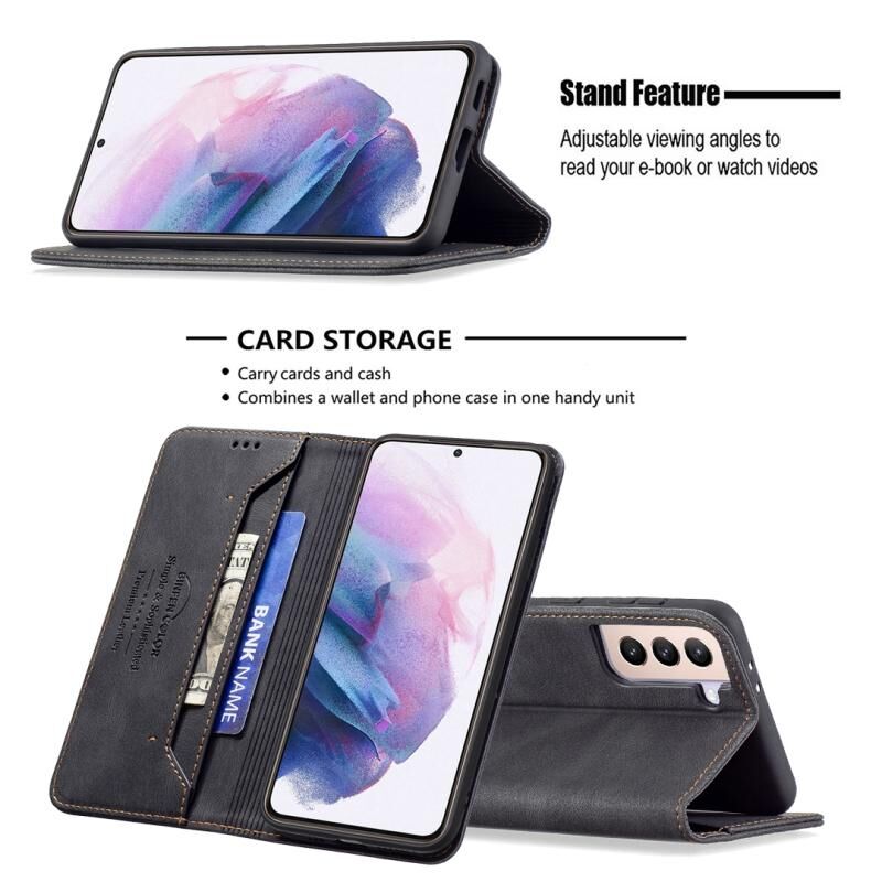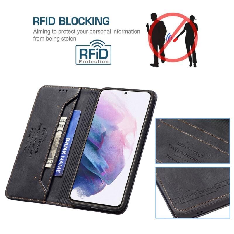 Για Samsung Galaxy S21+ 5G Μαγνητικό RFID Blocking Anti-Theft Δερμάτινη θήκη με θήκη & υποδοχές για κάρτες & πορτοφόλι (Μαύρο)