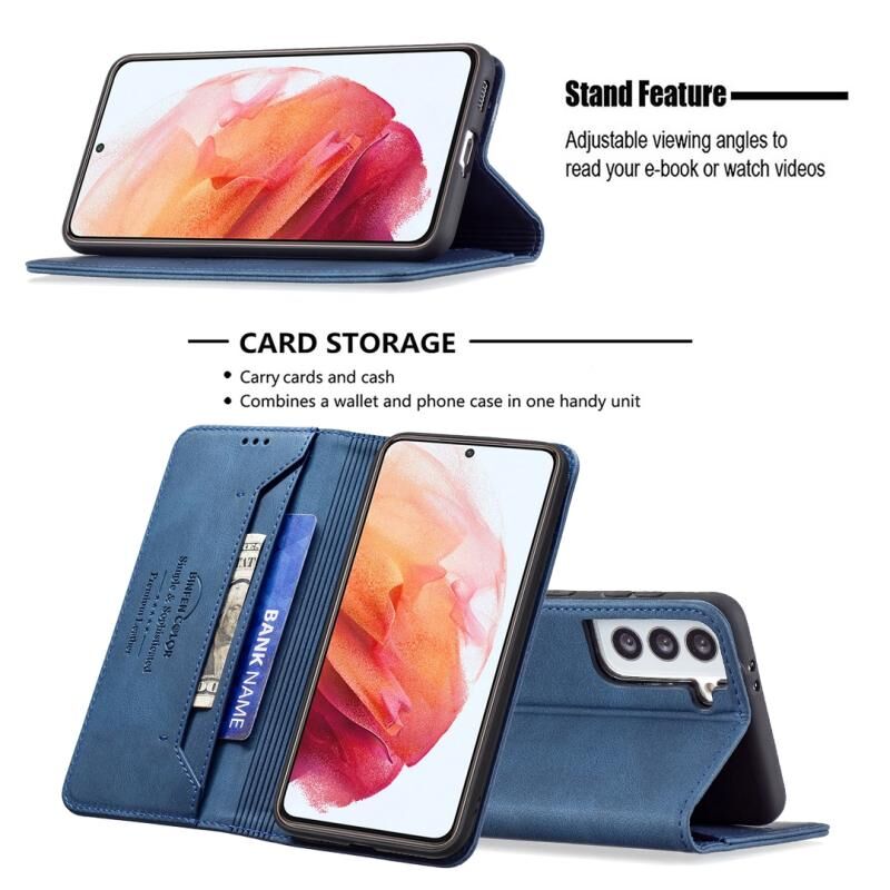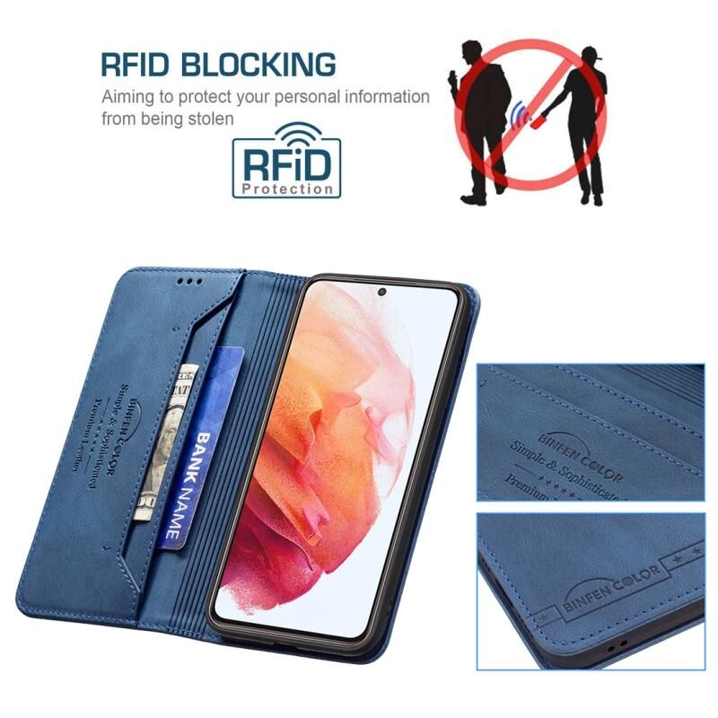 Για Samsung Galaxy S21 5G Μαγνητικό RFID Blocking Anti-Theft Δερμάτινη θήκη με θήκη & υποδοχές για κάρτες & πορτοφόλι (μπλε)