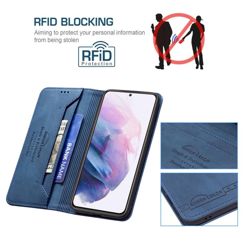 Για Samsung Galaxy S21+ 5G Μαγνητικό RFID Blocking Anti-Theft Δερμάτινη θήκη με θήκη & υποδοχές για κάρτες & πορτοφόλι (μπλε)