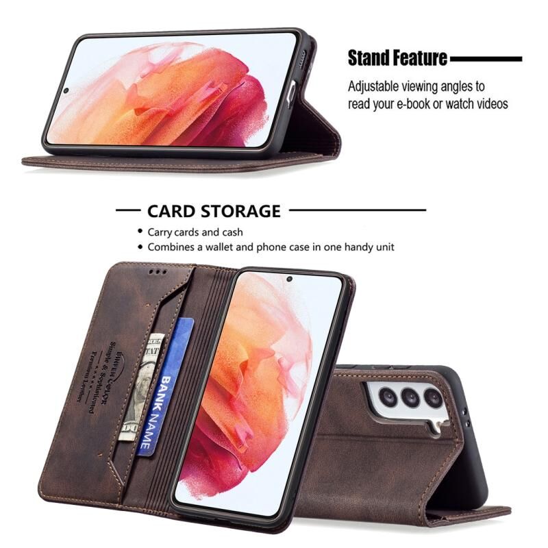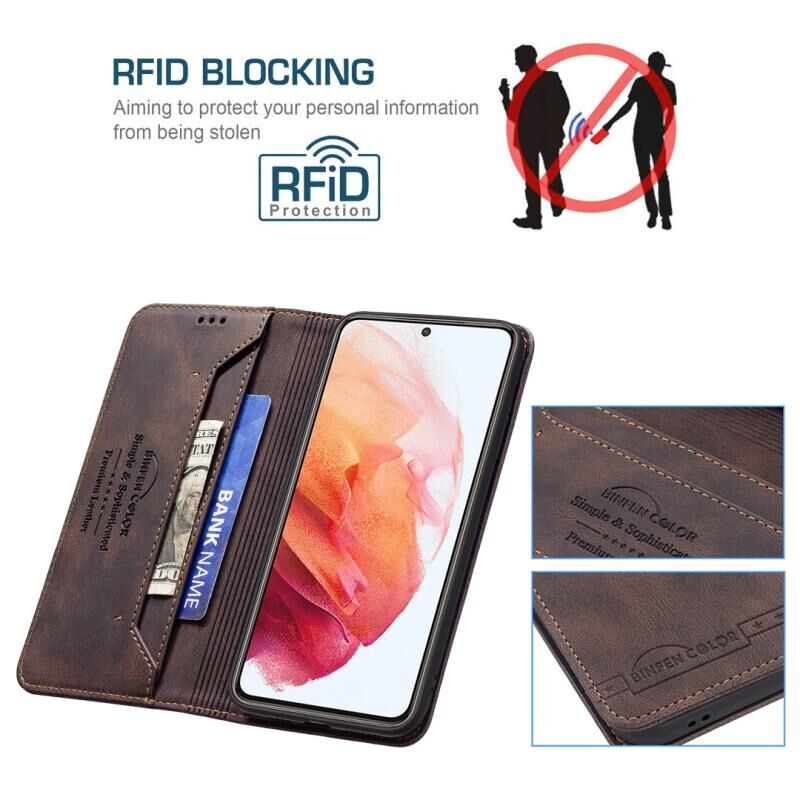 Για Samsung Galaxy S21 5G Μαγνητικό RFID Blocking Anti-Theft Δερμάτινη θήκη με θήκη & υποδοχές για κάρτες & πορτοφόλι (καφέ)