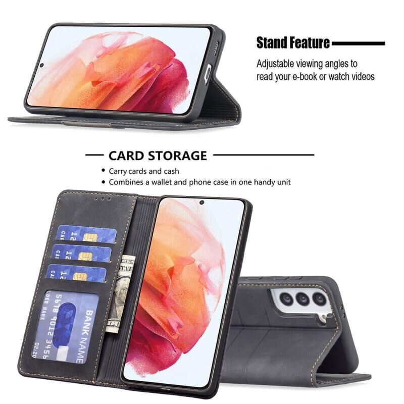 Για Samsung Galaxy S21+ 5G Μαγνητική θήκη τηλεφώνου δερμάτινη (Μαύρο)