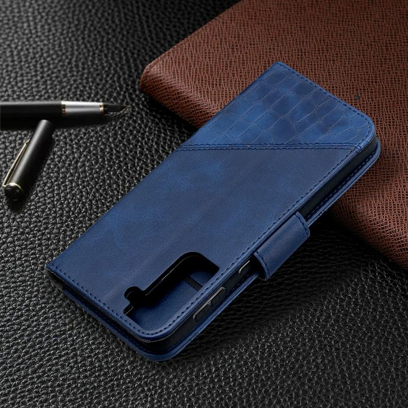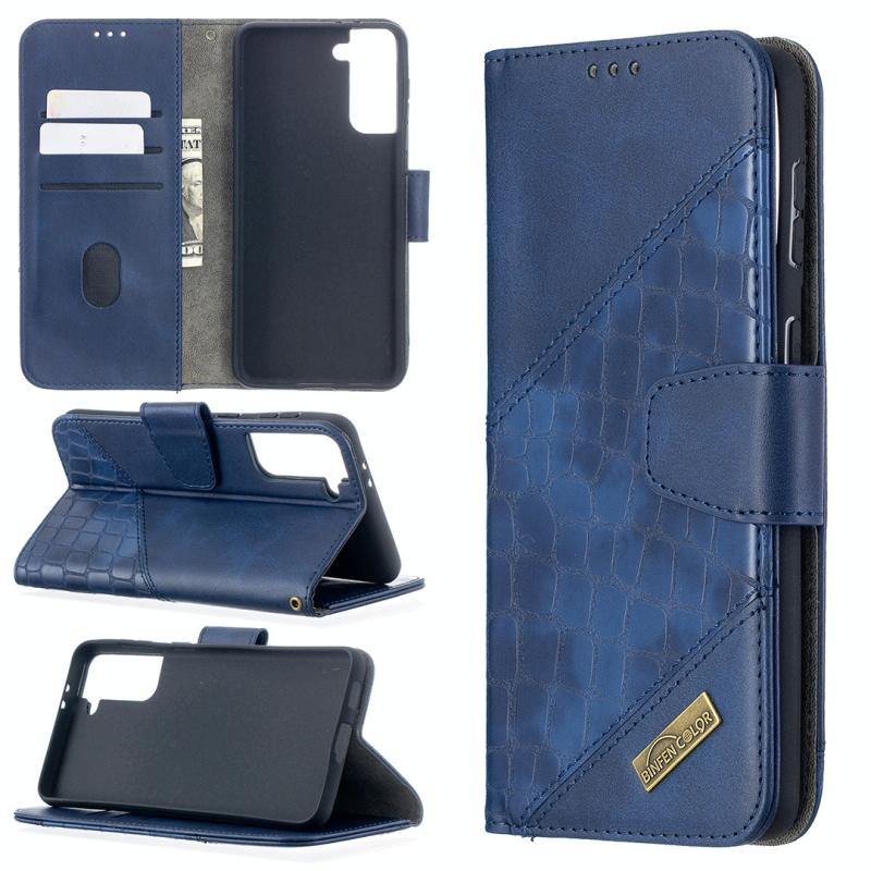 For Samsung Galaxy S21+ 5G Matching Color Crocodile Texture Horizontal Flip PU Leather Case with Wallet & Holder & Card Slots(Blue)