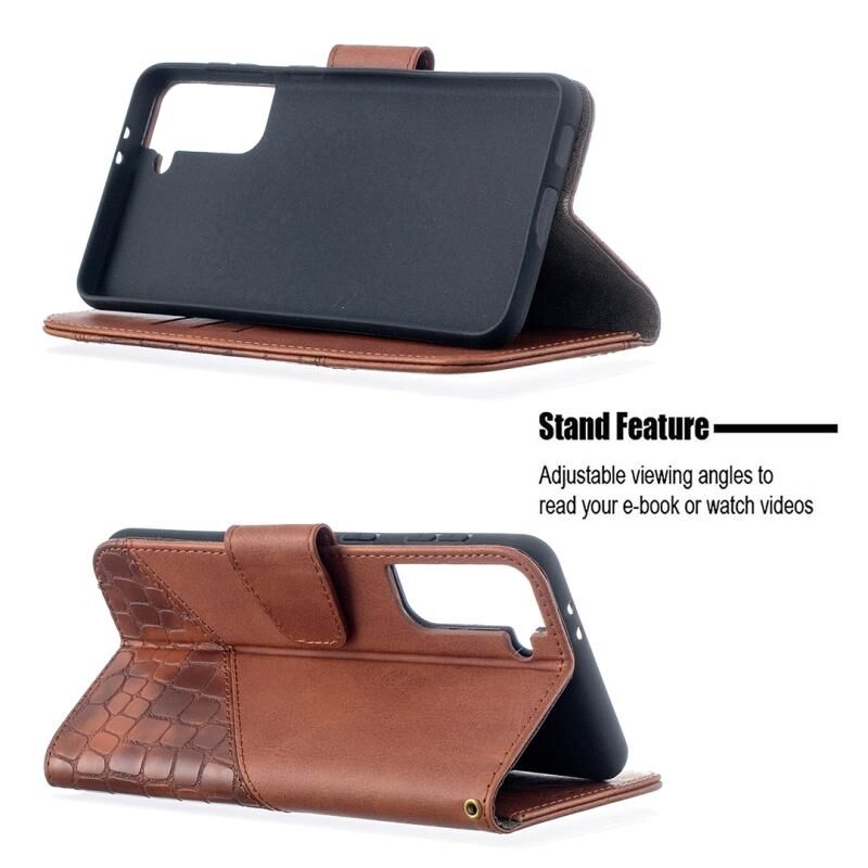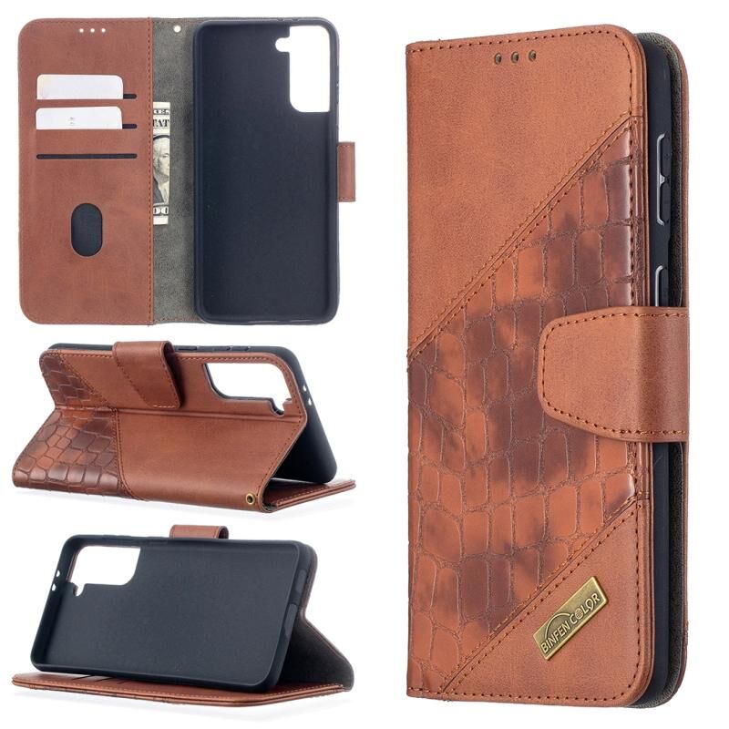 Θήκη Samsung Galaxy S21+ 5G Οριζόντια Δερμάτινη PU με Υφή Κροκόδειλου σε Αντίστοιχο Χρώμα με Θήκη Πορτοφολιού & Στήριξη & Θήκες Καρτών (Χρυσό Ρόδι)