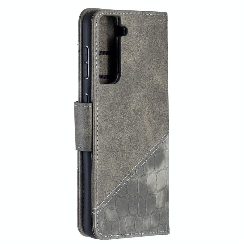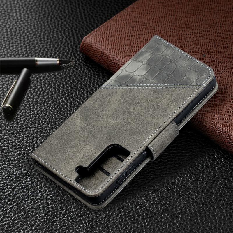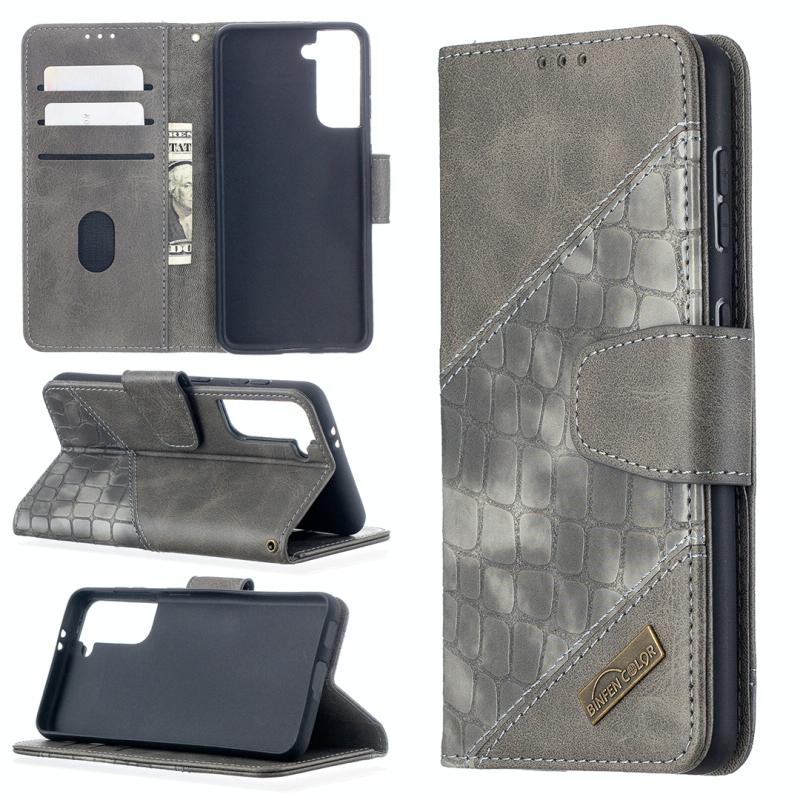 For Samsung Galaxy S21 5G Matching Color Crocodile Texture Horizontal Flip PU Leather Case with Wallet & Holder & Card Slots(Grey)