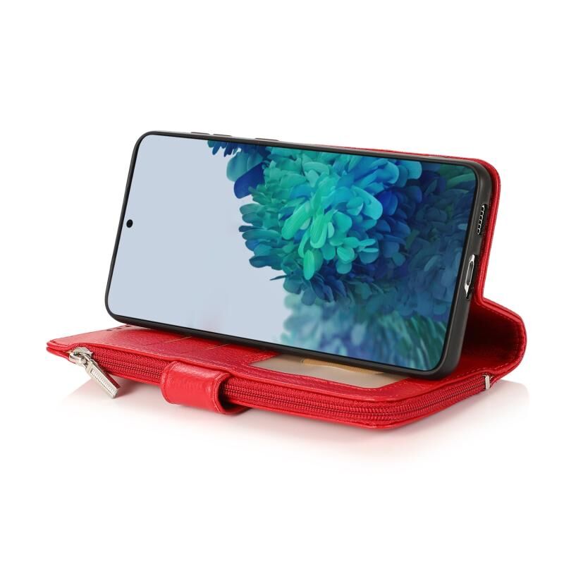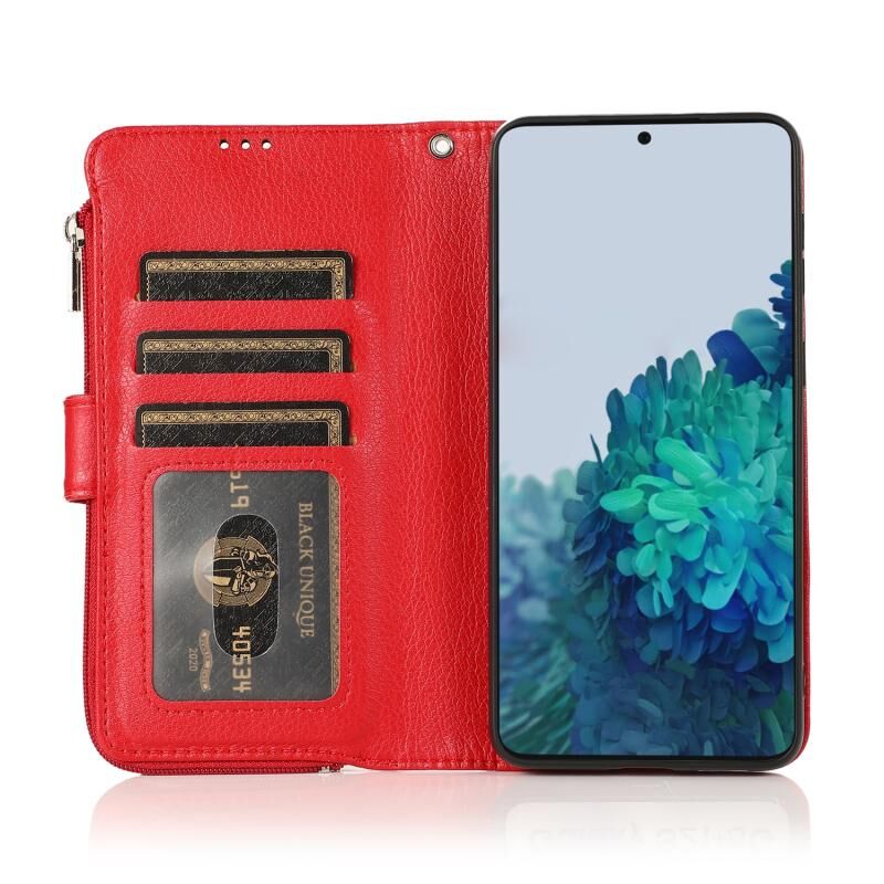 Για Samsung Galaxy S21+ 5G Microfiber φερμουάρ οριζόντια Flip δερμάτινη θήκη (κόκκινο)