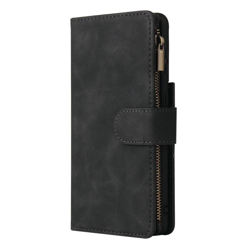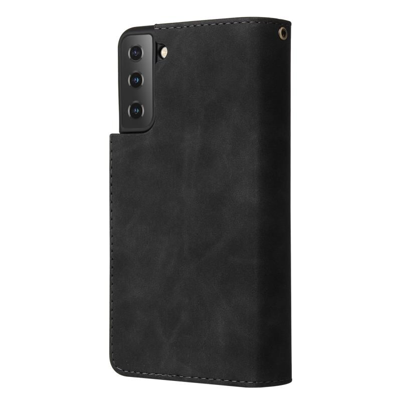 Για Samsung Galaxy S21 + 5G Πολυλειτουργική παγωμένο φερμουάρ πορτοφόλι δερμάτινη θήκη τηλεφώνου (μαύρο)