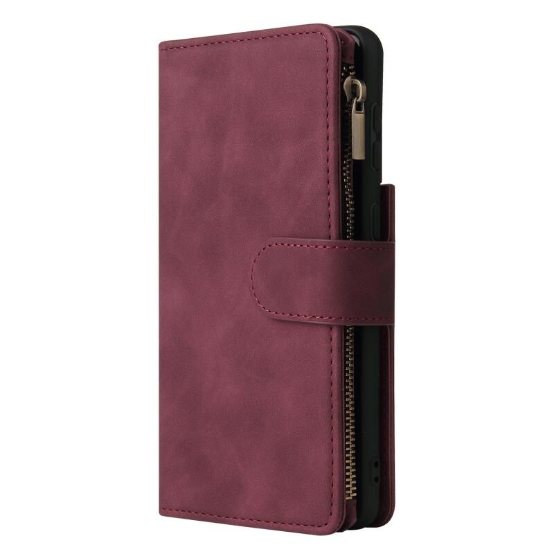 For Samsung Galaxy S21+ 5G Multifunctional Frosted Zipper Wallet Leather Phone Case(Wine Red)