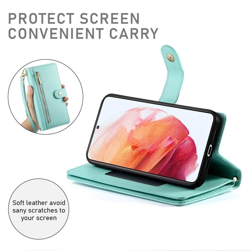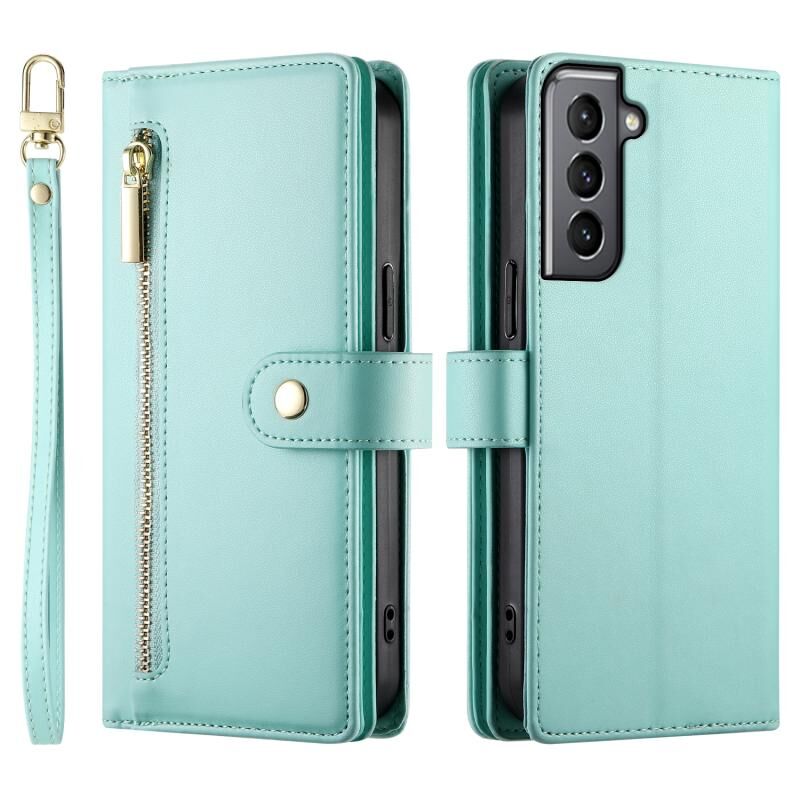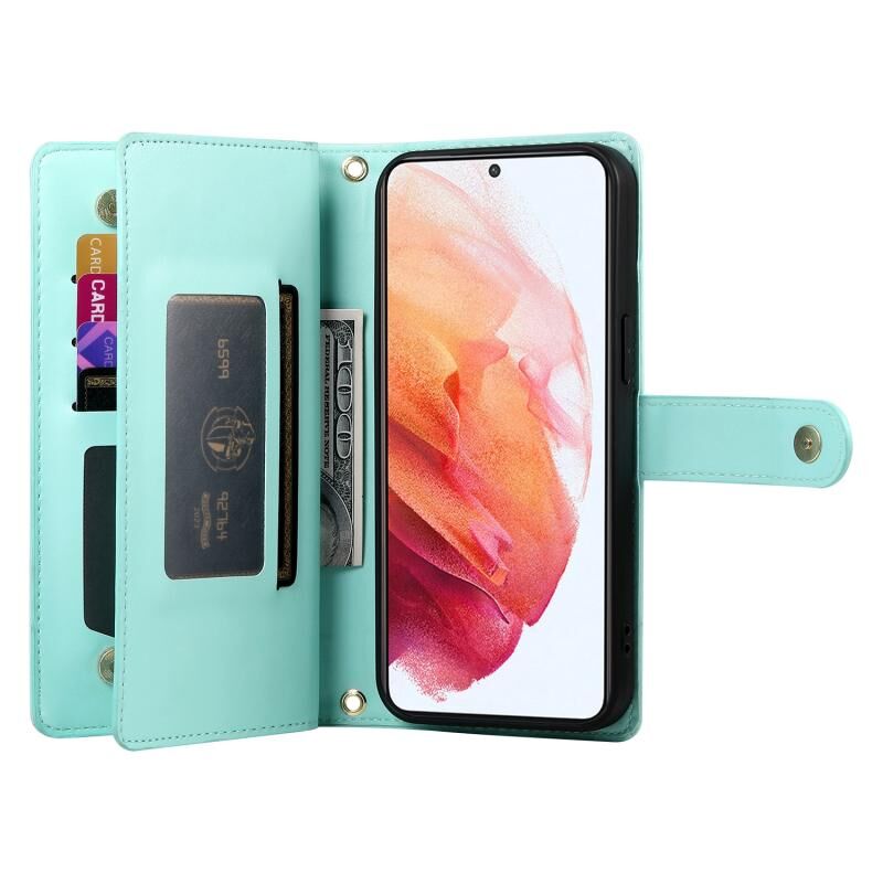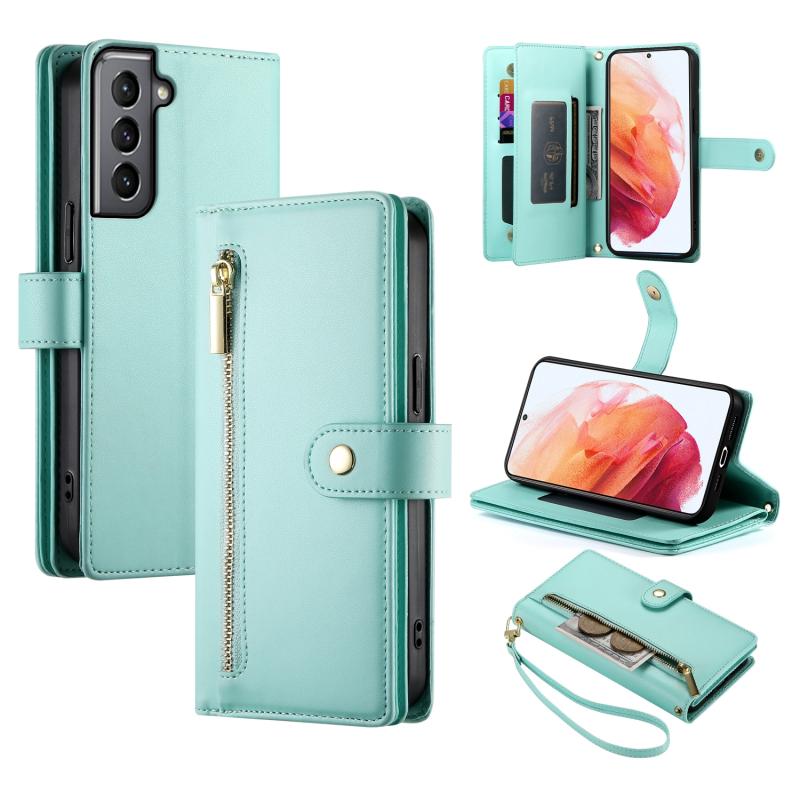 For Samsung Galaxy S21 5G Nine Card-slot Zipper Wallet Bag Leather Phone Case(Mint Green)