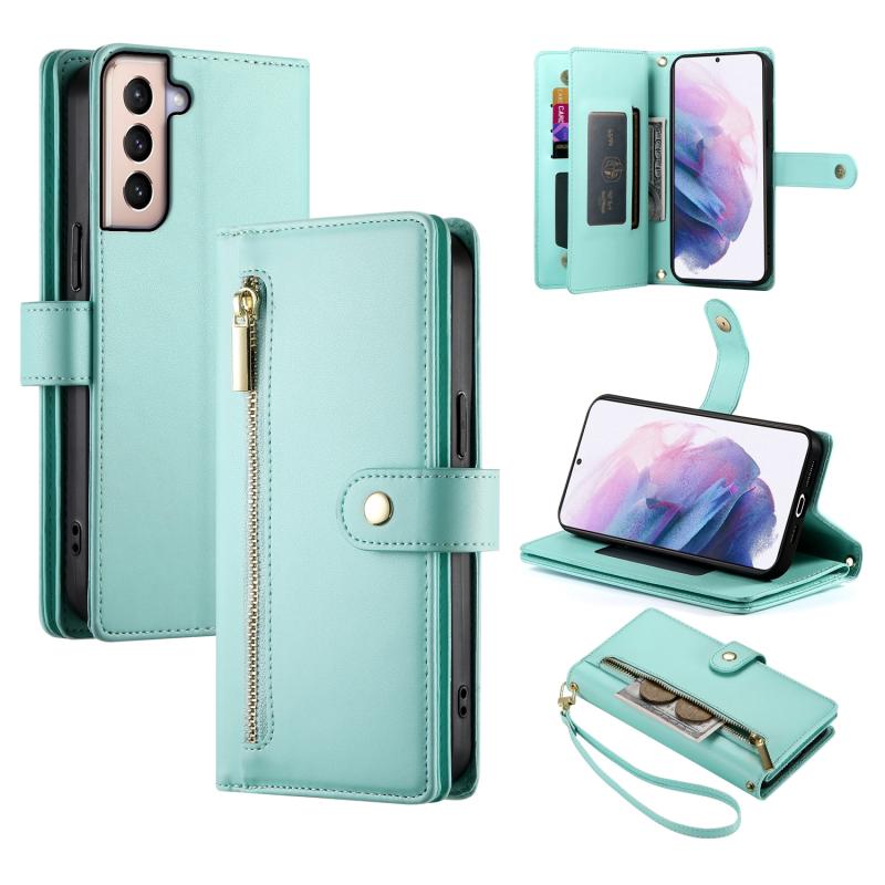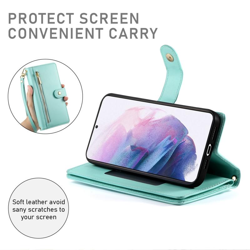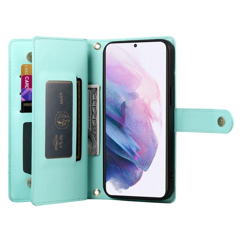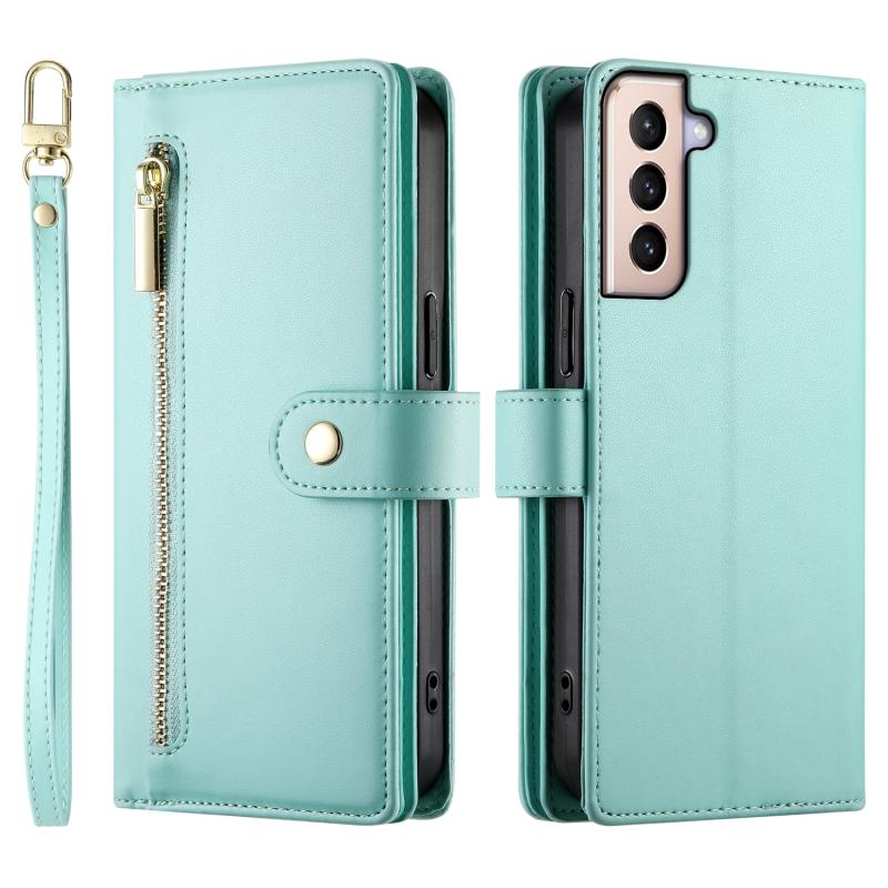 Θήκη κινητού Samsung Galaxy S21+ 5G από δέρμα με θήκη πορτοφολιού με φερμουάρ και εννέα υποδοχές καρτών (Ροζ)