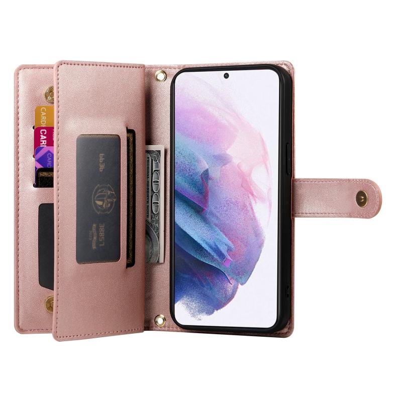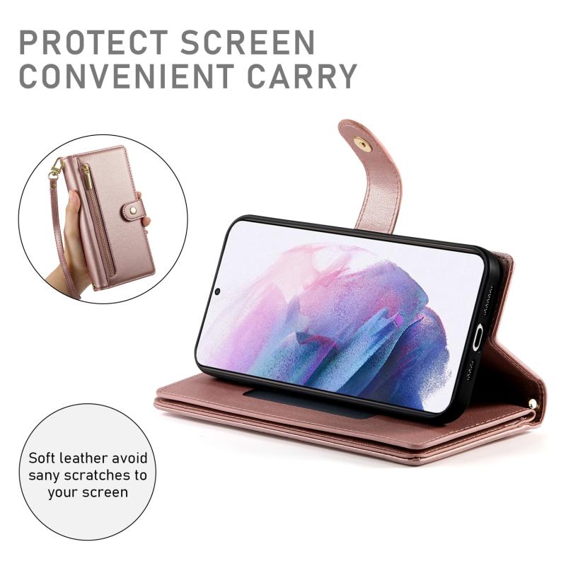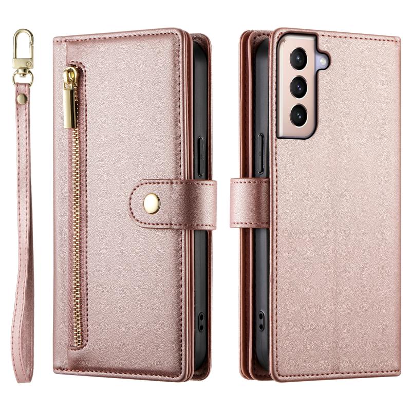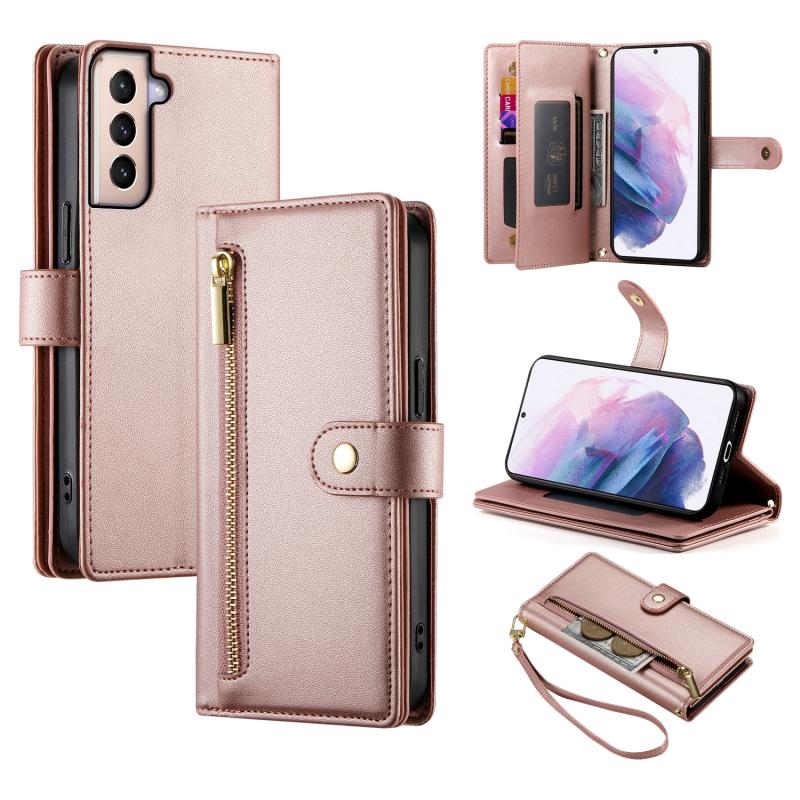 Θήκη κινητού Samsung Galaxy S21+ 5G από δέρμα με θήκη πορτοφολιού με φερμουάρ και εννέα υποδοχές καρτών (Ροζ)