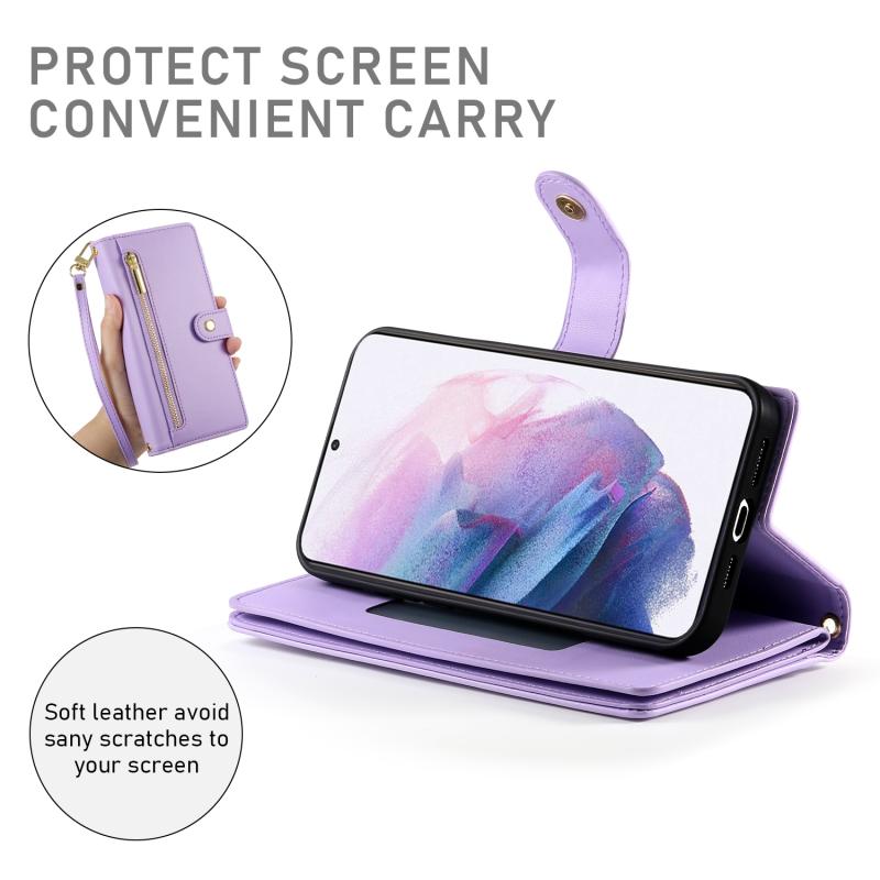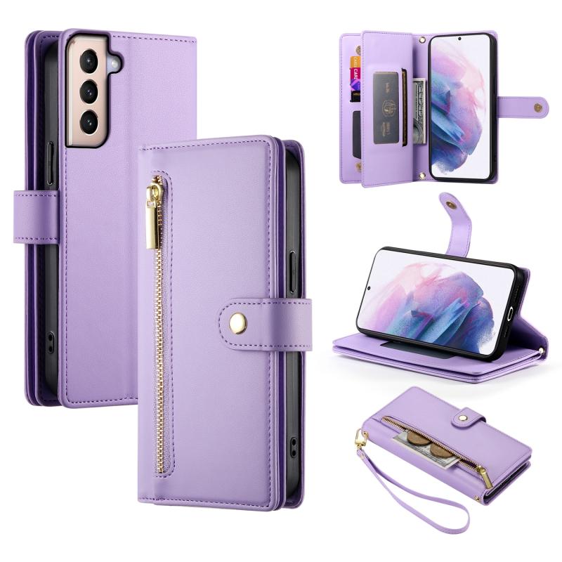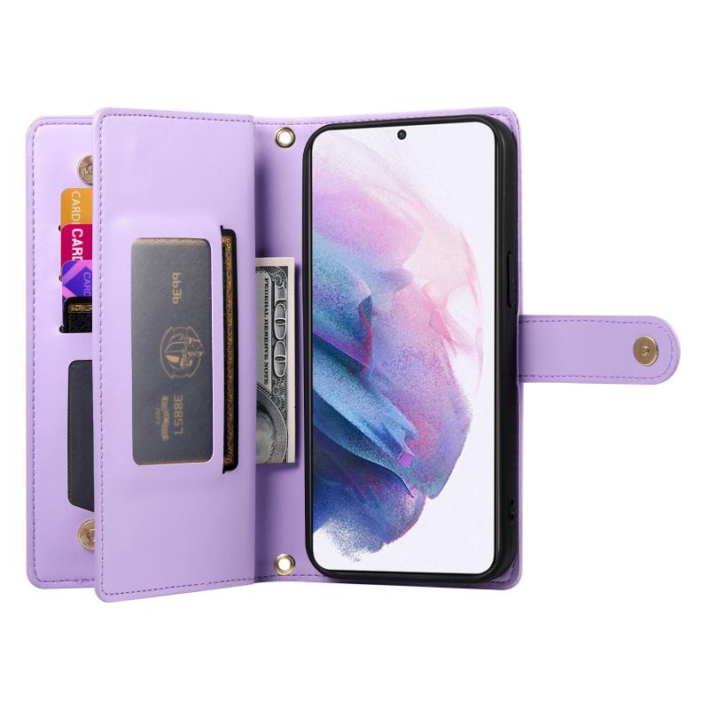 For Samsung Galaxy S21+ 5G Nine Card-slot Zipper Wallet Bag Leather Phone Case(Purple)