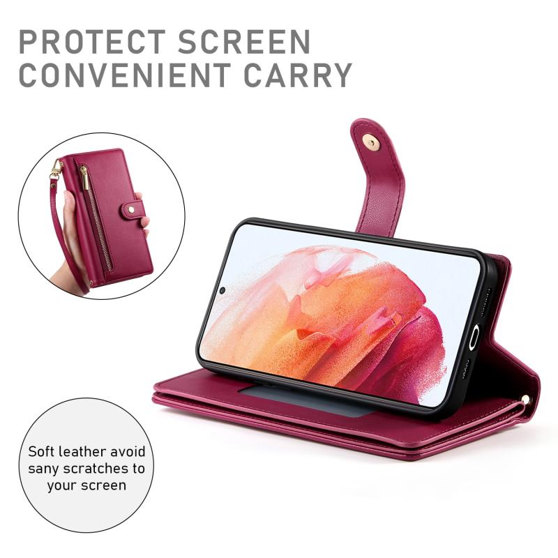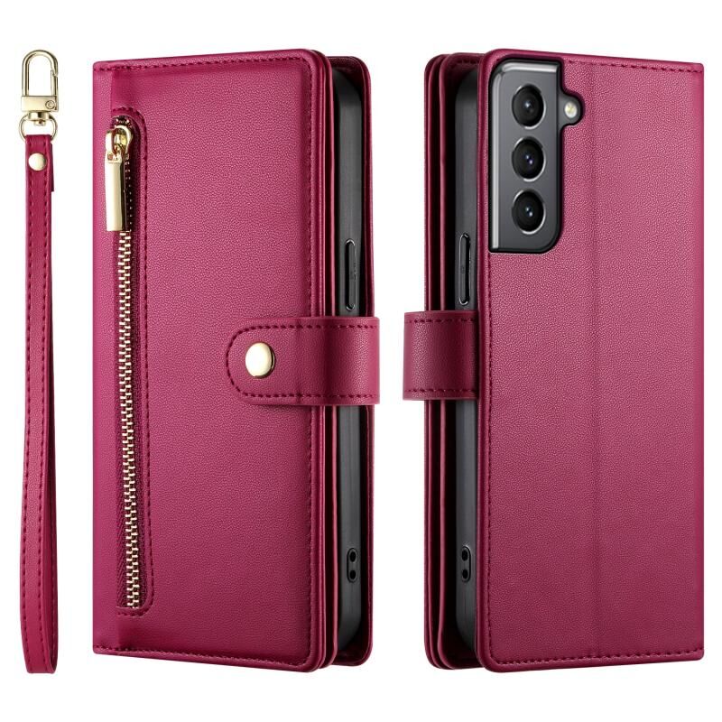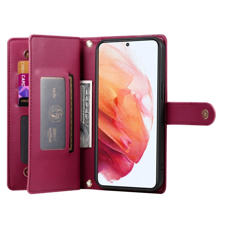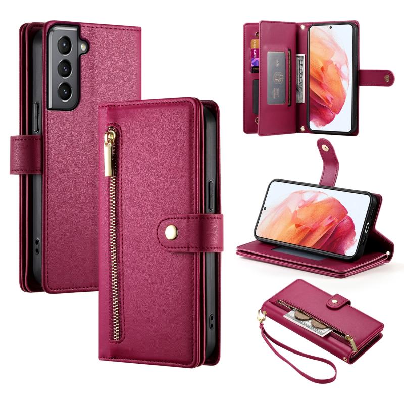 For Samsung Galaxy S21 5G Nine Card-slot Zipper Wallet Bag Leather Phone Case(Red)