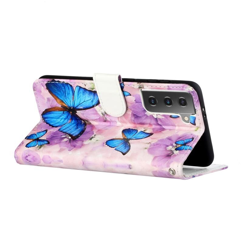 Θήκη Samsung Galaxy S21+ 5G από Δερματίνη PU με Οριζόντιο Άνοιγμα, ανάγλυφο σχέδιο με λάδι και χρώματα, με βάση για στήριξη, θήκες για κάρτες, πορτοφόλι και κορδόνι (Μπλε Κουκουβάγια)