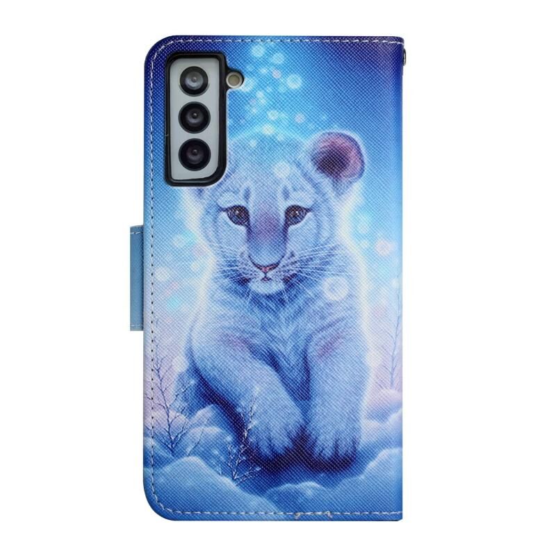 Θήκη δέρματος οριζόντιας αναδίπλωσης με σχέδιο ζωγραφικής για Samsung Galaxy S21 5G με βάση & υποδοχή κάρτας & πορτοφόλι (Μικρό Λεοπάρδαλη)